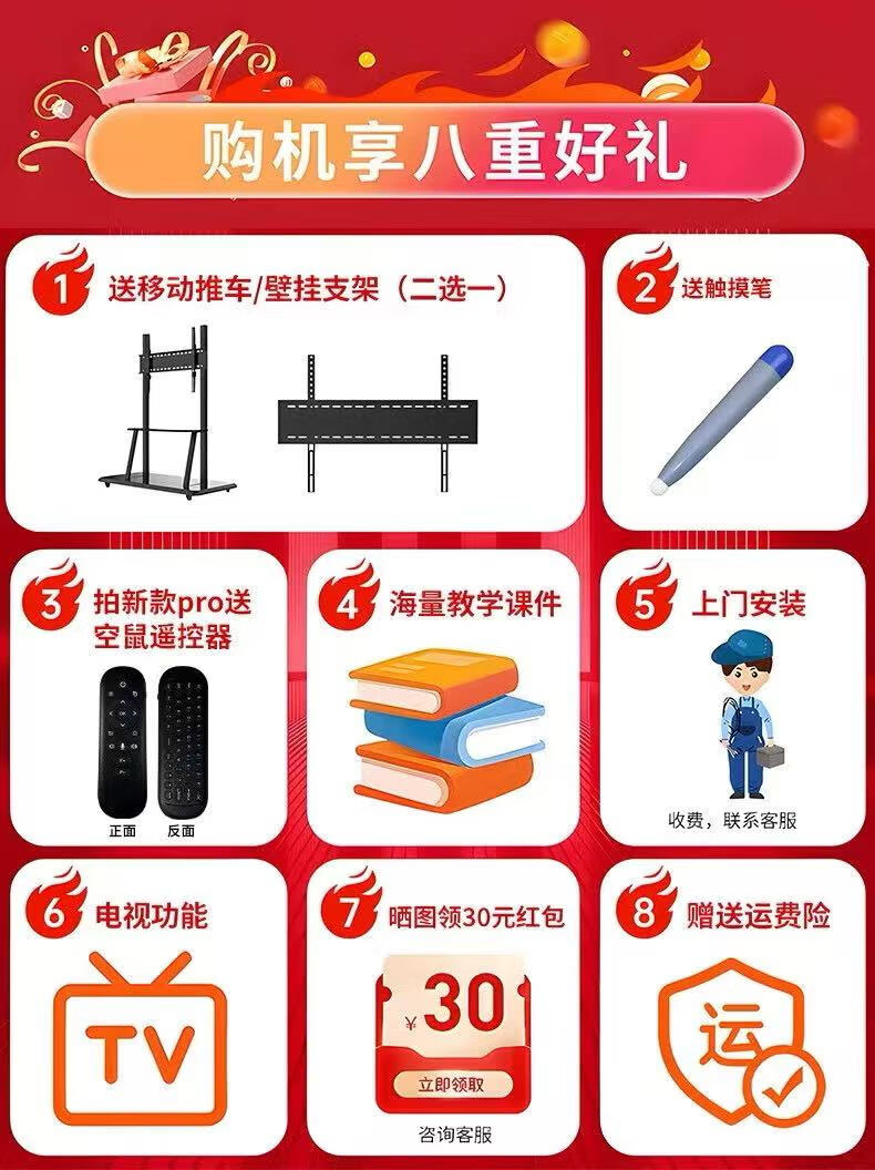 品祺品祺多媒体教学一体机电脑触摸一体机会议平板智慧屏投屏显示器触屏电子白板幼儿园交互式实时批注 55英寸(店长推荐) i5二代 8g+128g教学一体机(壁挂架)准尺寸