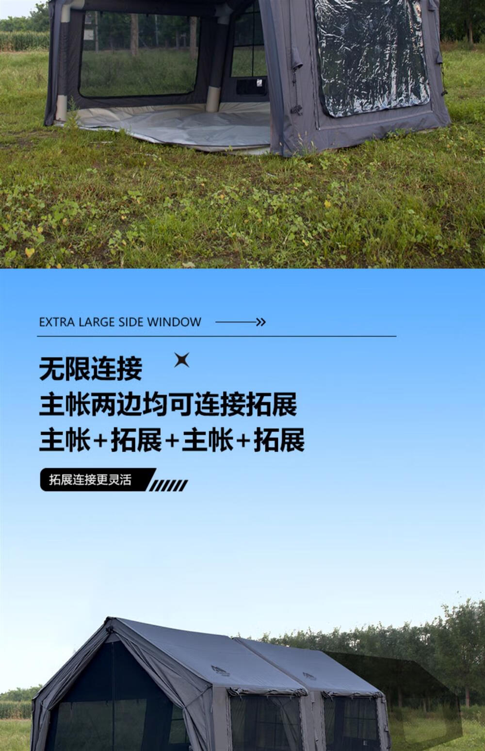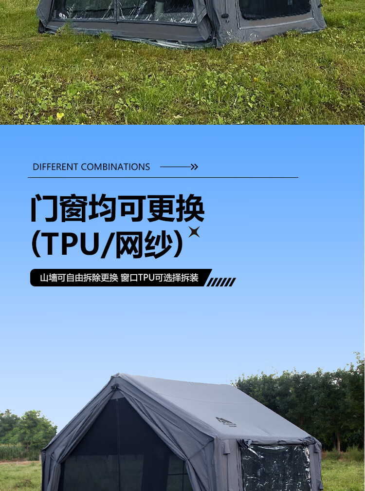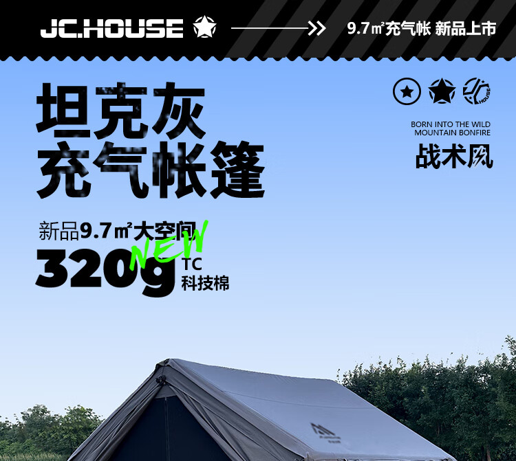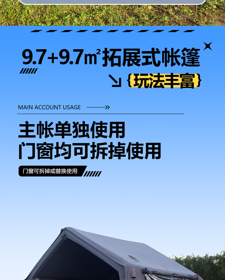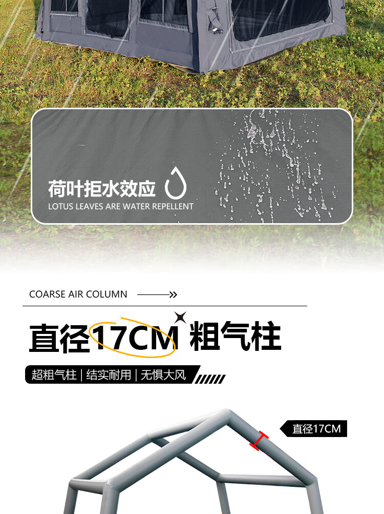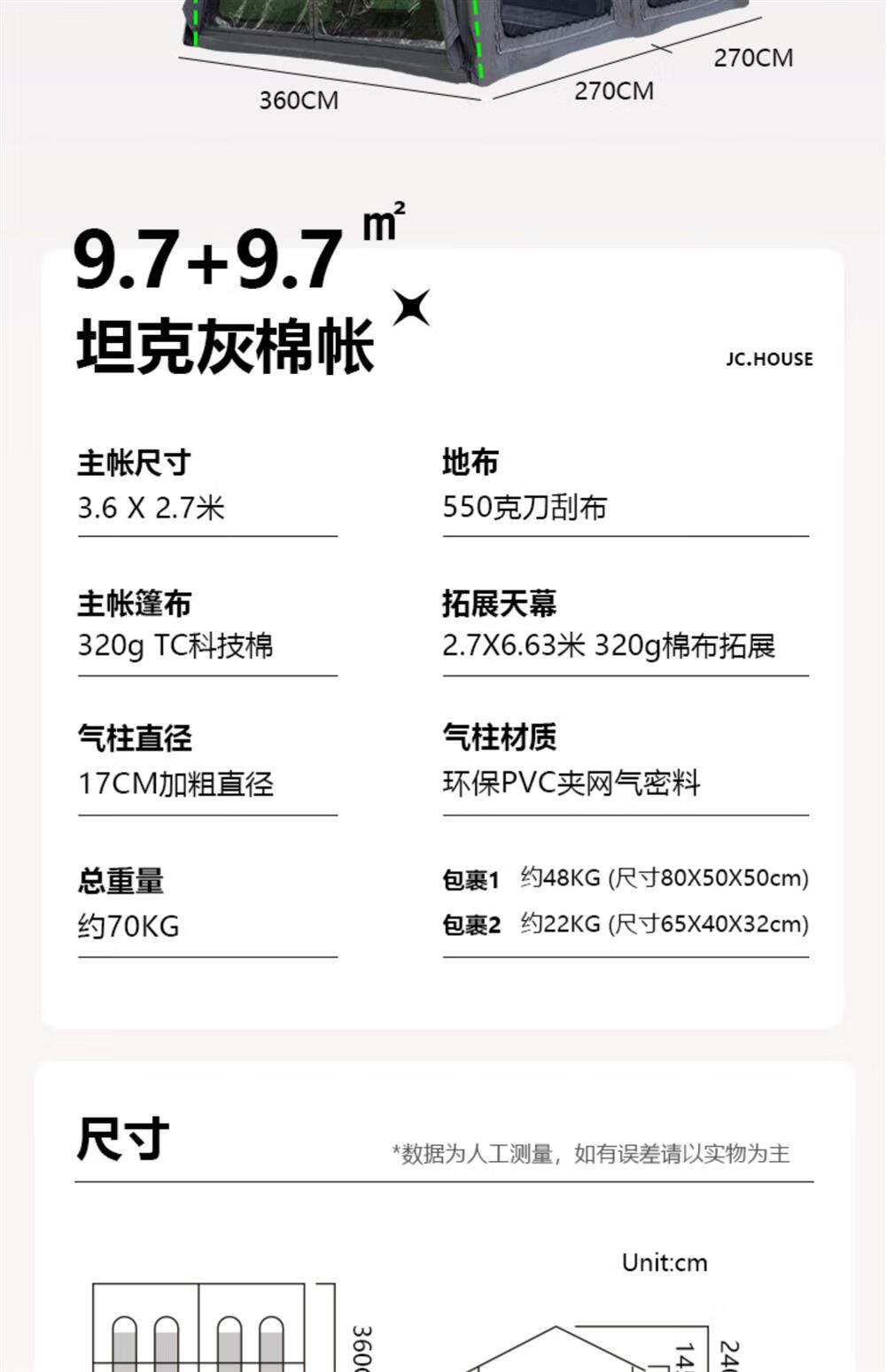 京诚豪斯19.4㎡( 9.7+9.7㎡)坦克灰充气帐篷露营带拓展棉布帐篷 豪斯(9.7㎡+9.7㎡)坦克灰充气帐