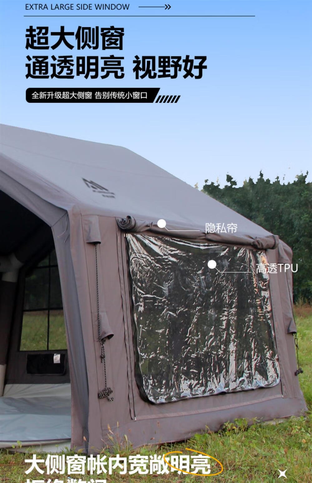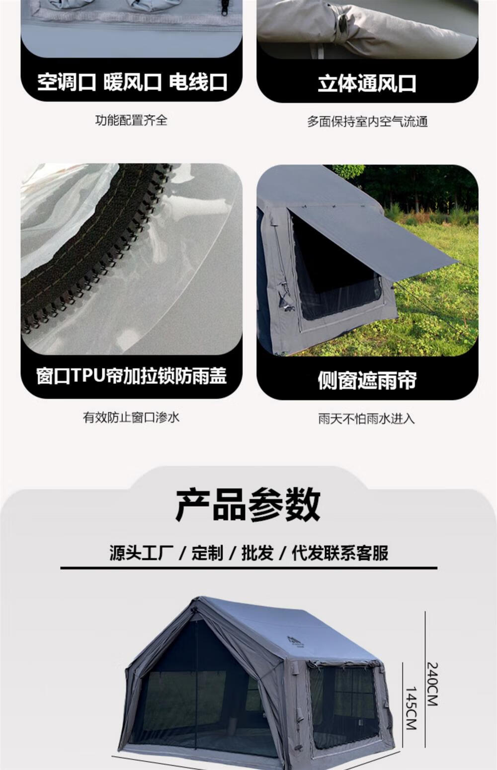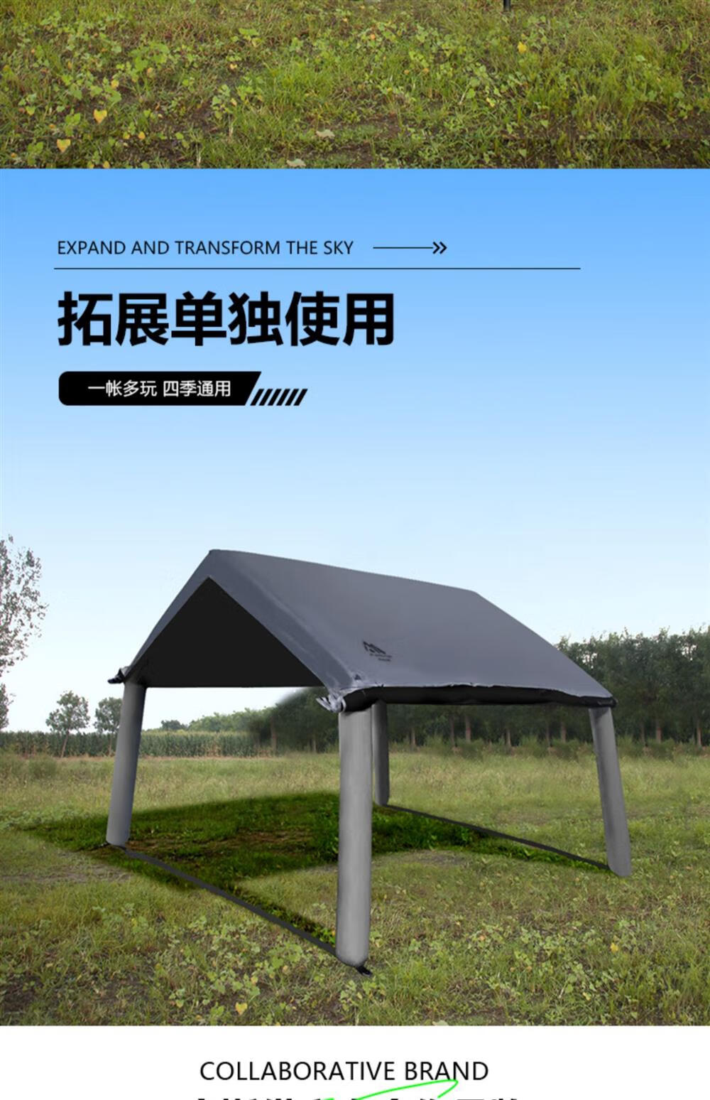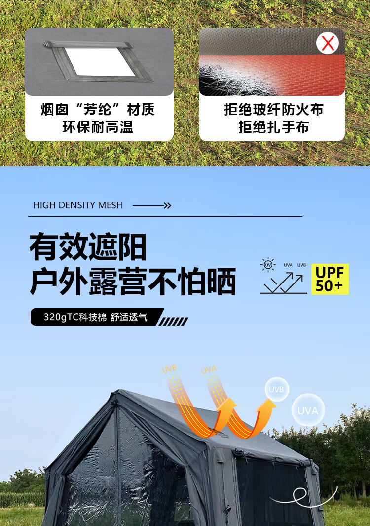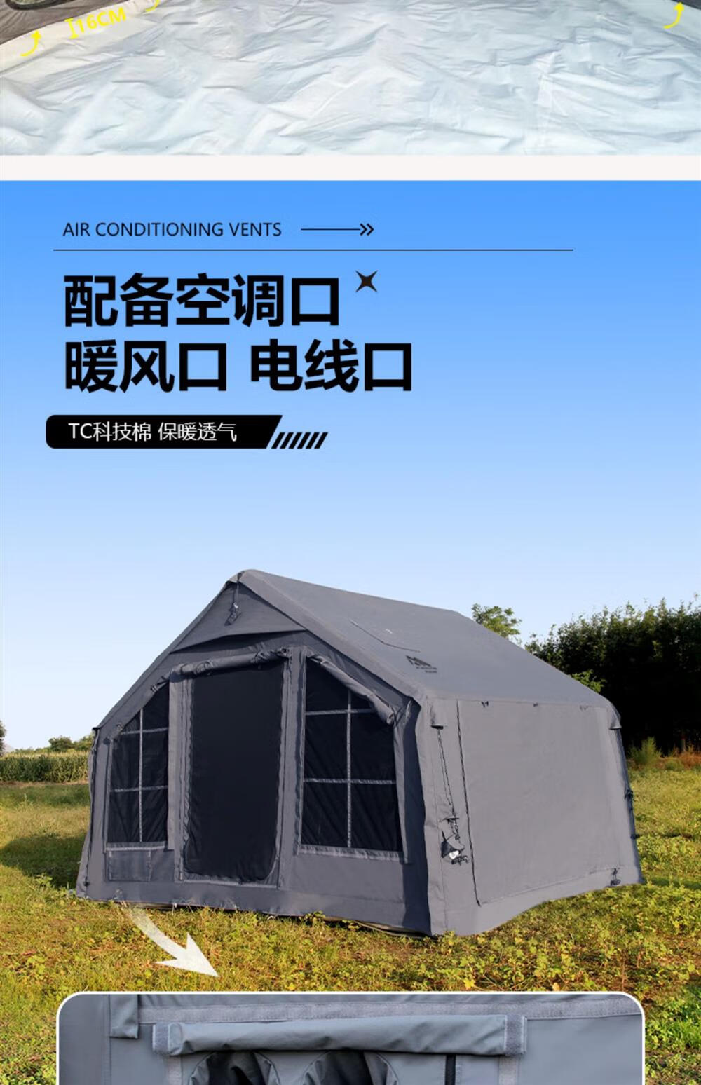 京诚豪斯19.4㎡( 9.7+9.7㎡)坦克灰充气帐篷露营带拓展棉布帐篷 豪斯(9.7㎡+9.7㎡)坦克灰充气帐