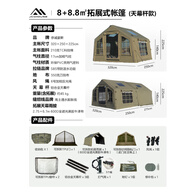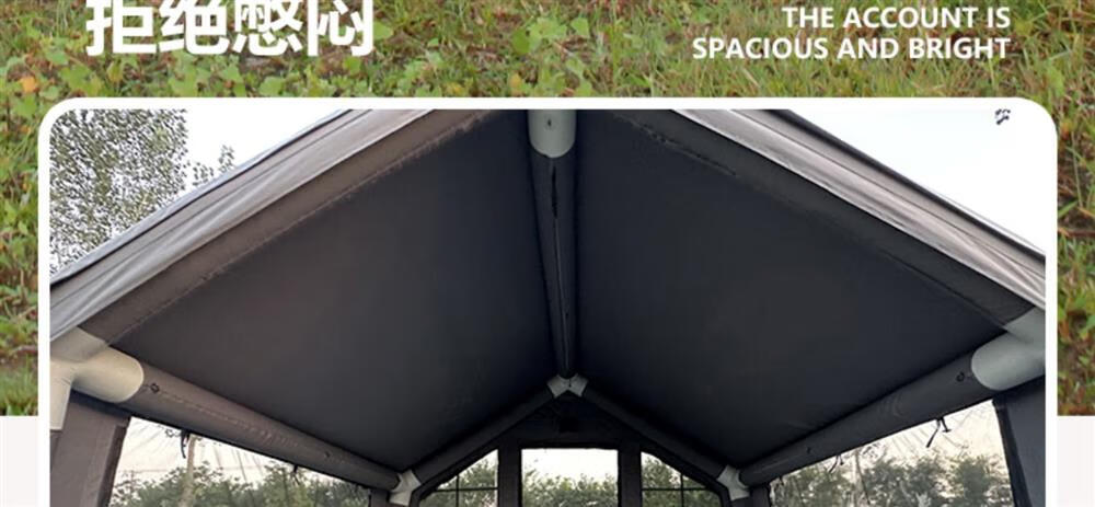 京诚豪斯JcHouse升级款8+8.8㎡充气帐篷露营地带拓展屋脊帐 军绿8+8.8㎡棉布主帐+全遮光黑胶5天发货 4-8人