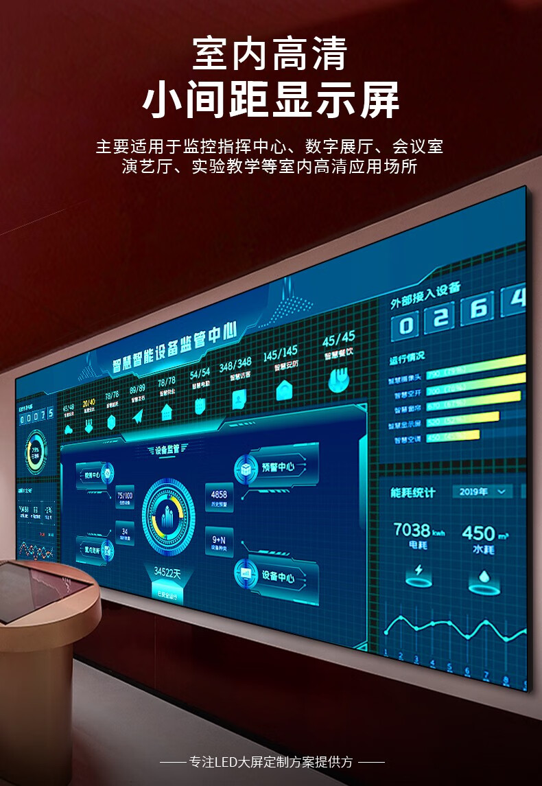 保冠 室内全彩led显示屏会议室展厅报告厅指挥调度大厅屏幕直播间舞台租赁酒吧电子屏小间距显示屏 室内全彩无缝P1.53【1㎡单价】