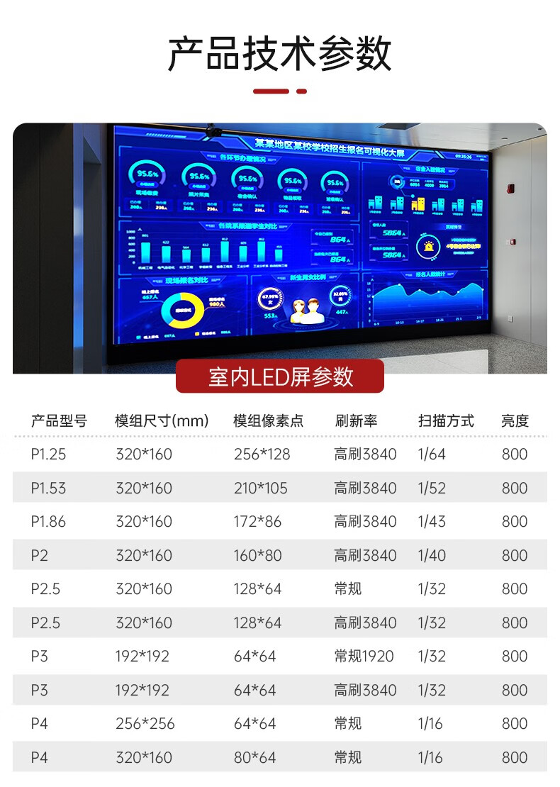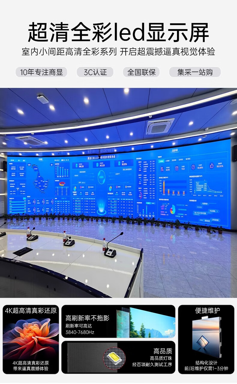 室内全彩led显示屏会议室公司单位内部走廊展示大厅无缝屏P1.53/P2.5/P1.86/广告宣传屏 室内全彩无缝P3【0.1㎡单价】