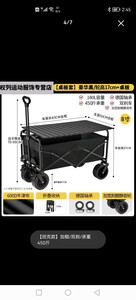 北岳露营推车可折叠户外手推野餐车营地拖车拉杆小拉车桌板烧烤野营车 煤炭黑【轻盈款】5寸万向轮