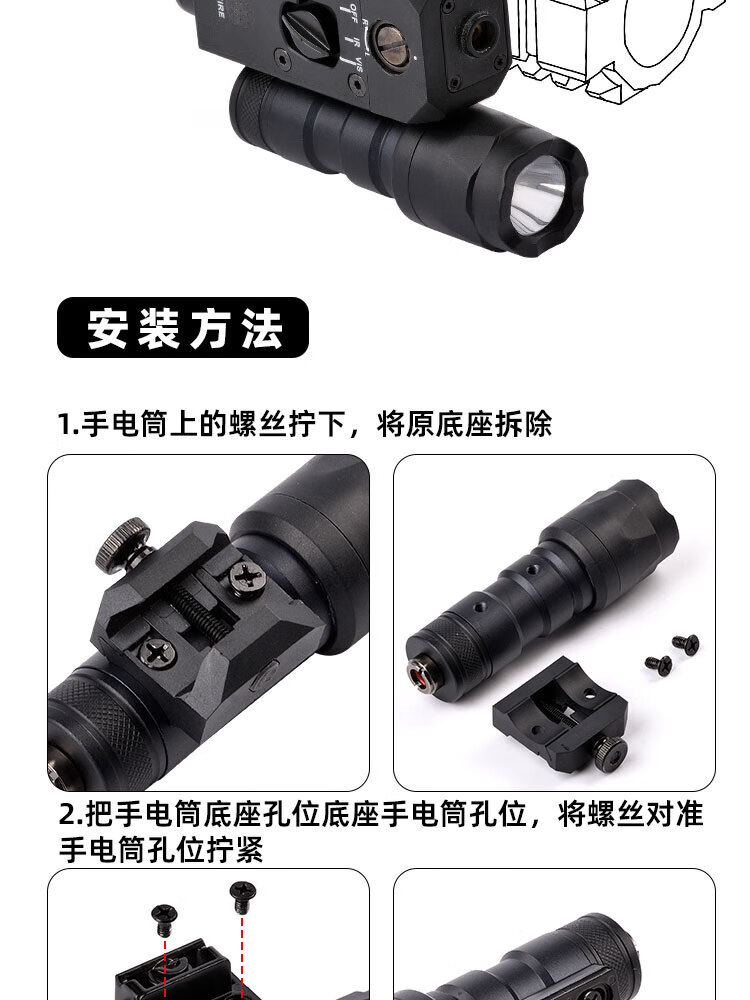CQBL红绿镭射归零战术盒激光可调鼠尾战术手电20mm合金尼龙指示器 MINI-A2红+M600+双控鼠尾