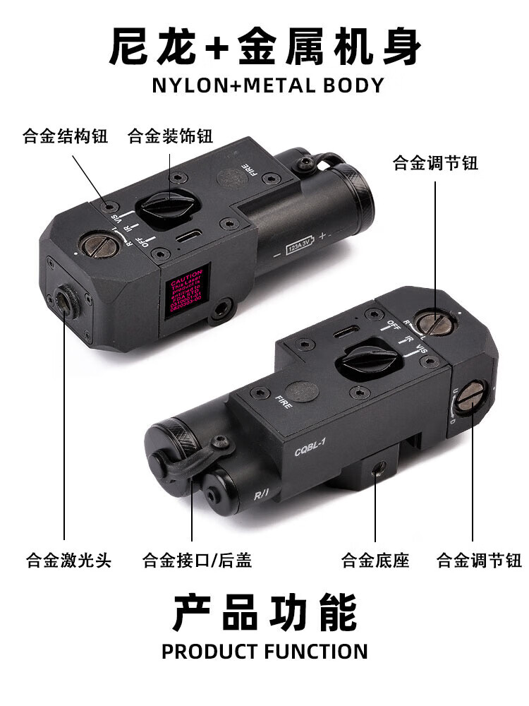 CQBL红绿镭射归零战术盒激光可调鼠尾战术手电20mm合金尼龙指示器 OGL沙红镭射【不可调节带鼠尾】
