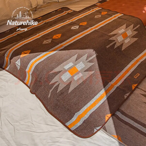 挪客(NatureHike)印第安几何羊毛披毯 户外露营加厚保暖地毯盖毯披肩护膝毯子 深咖啡