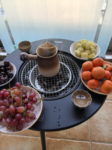 周末没事,闲着也是闲着,买了围炉煮茶的装备,就在自家阳台开整,架子大小合适很有质感,收折也很方面,为了烤点荤的还买了烤盘,送的收纳袋有点薄啊,用了两次大小确实合适,就是边缘不光滑,内胆有凹凸感清洗的时候有点费劲,其他还行。。