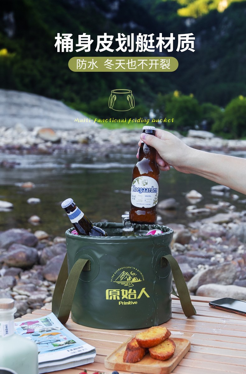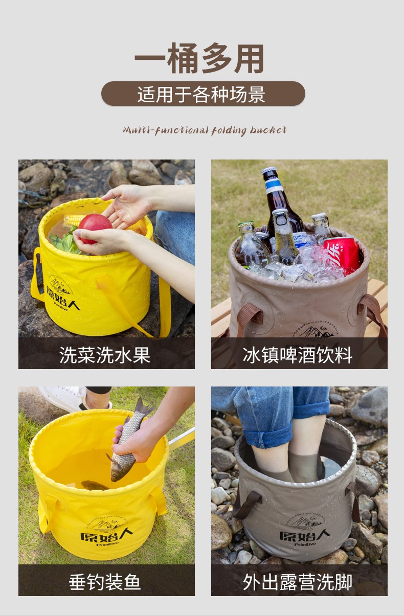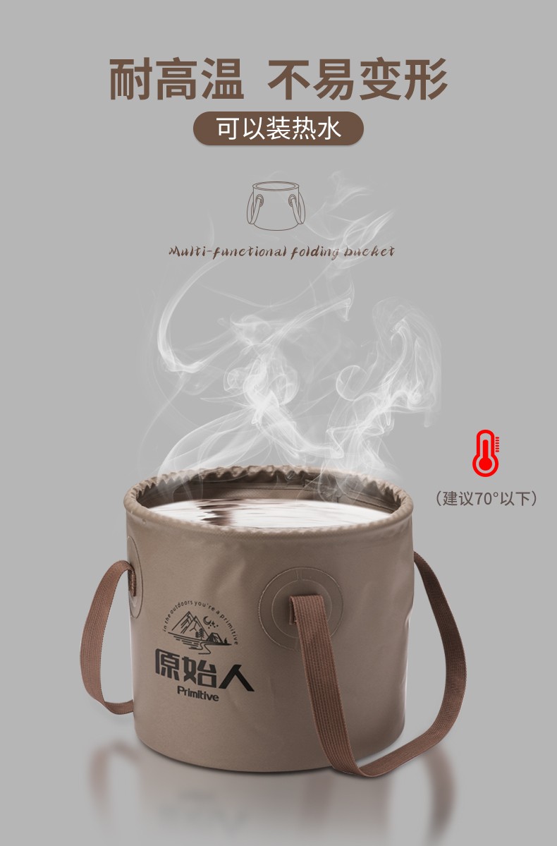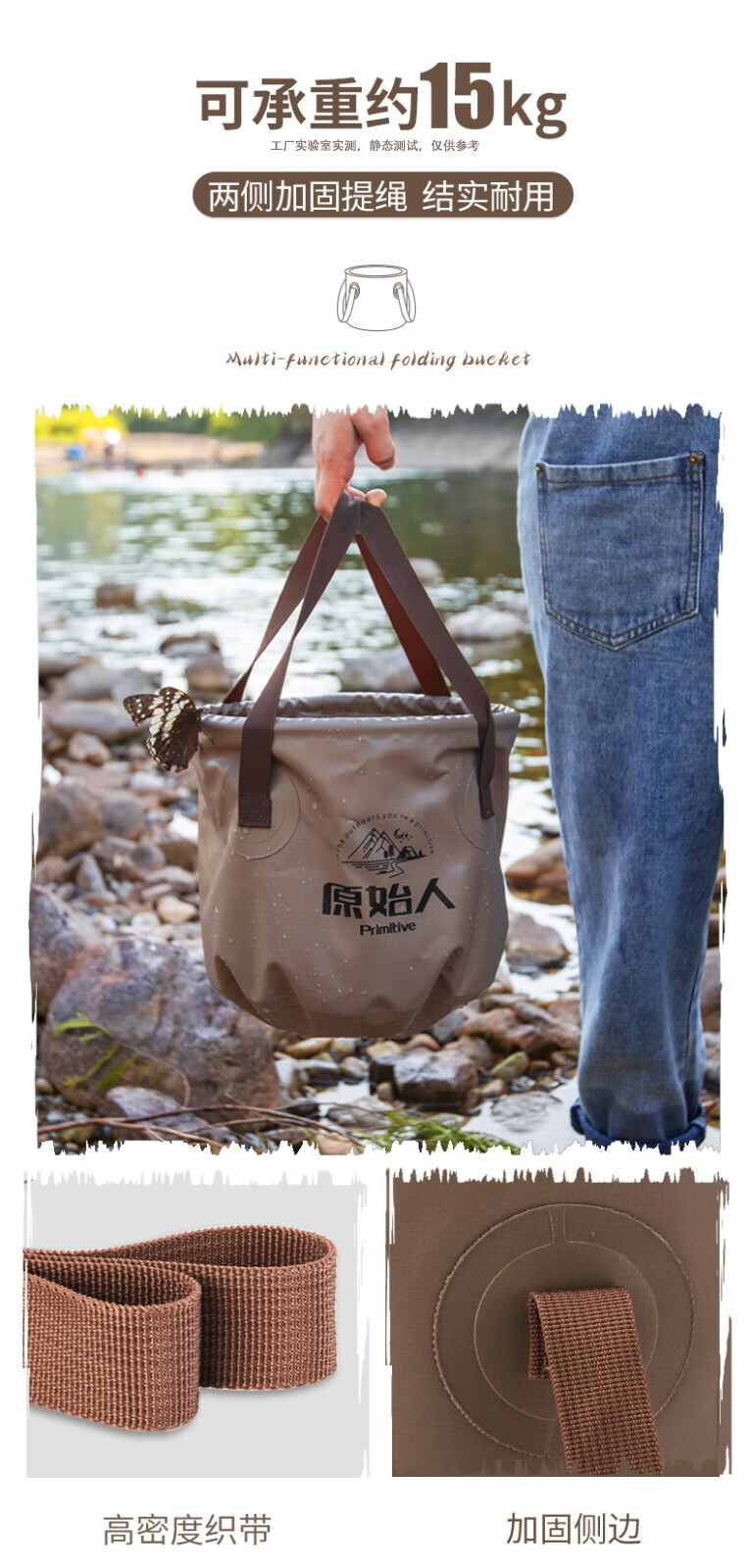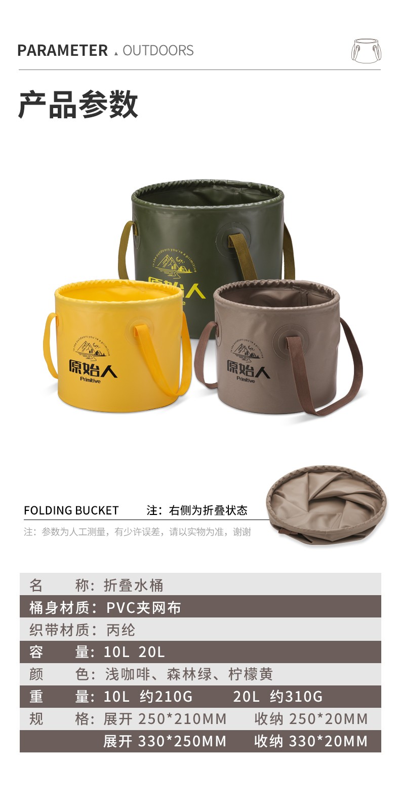原始人(The Primitive) 户外折叠水桶便携水箱大容量储水桶旅行蓄水储水罐车载装水桶 卡其色/20L(双面防水)