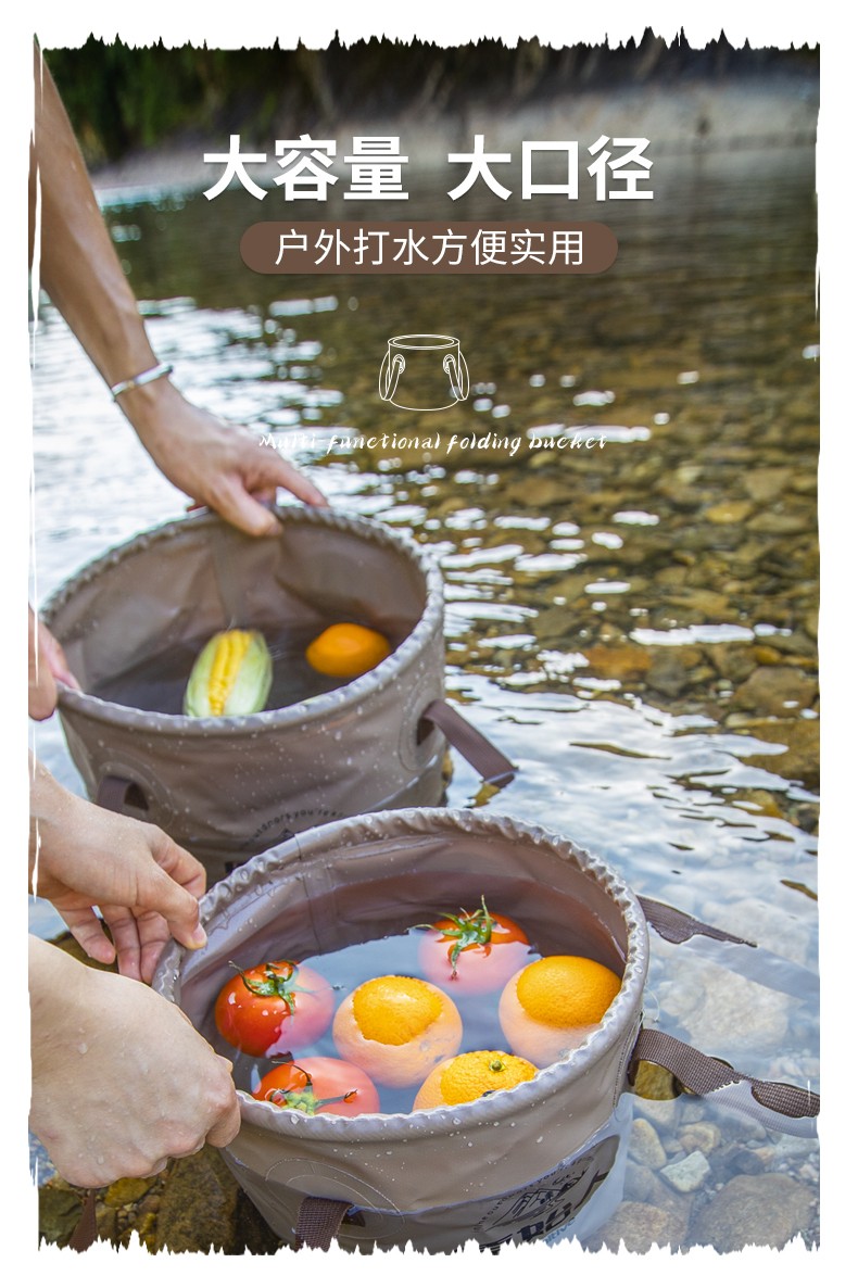 Tuban折叠水桶便携式户外车载洗菜盆洗衣泡脚袋钓鱼打水桶露营装备用品 卡其色10L 【加固提手 稳固不塌】