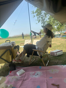 这款野餐车的小桌板,我特意选择了与野餐车同品牌的,颜色也很匹配。虽然有些小贵,但相信质量是很不错的。天气热起来了,我们也还没有开始使用。