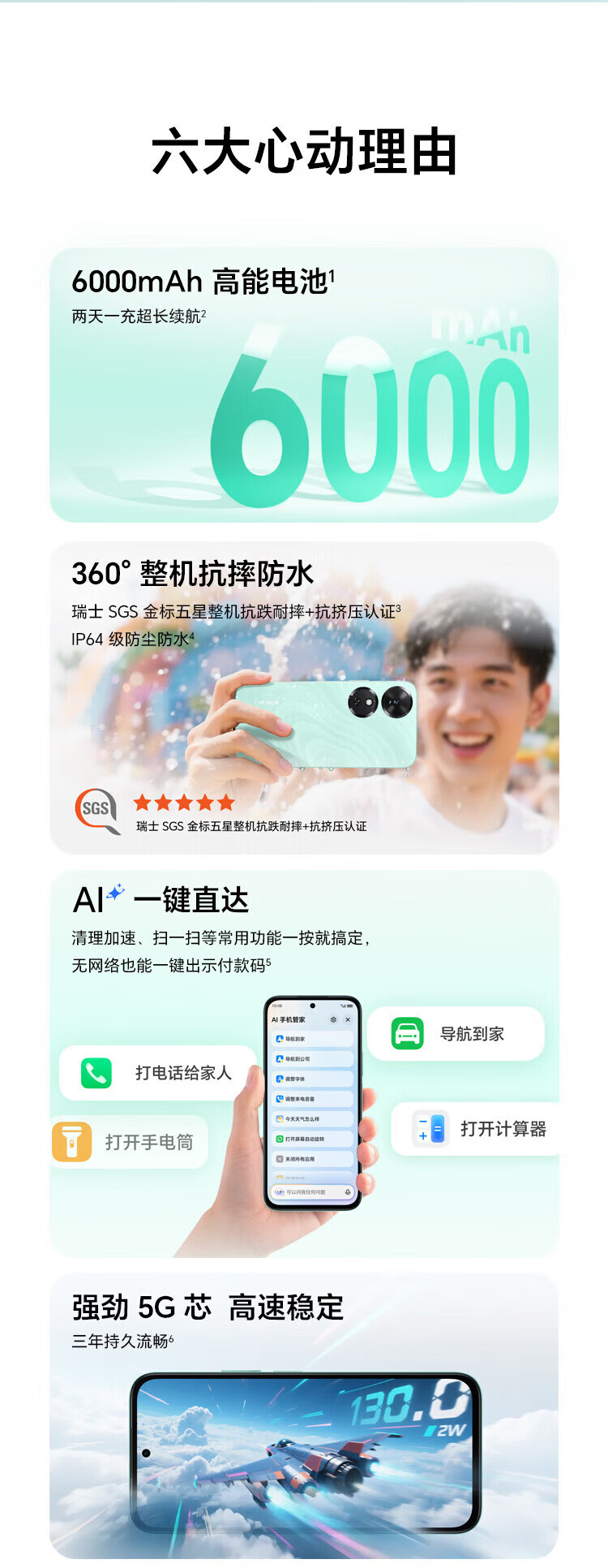 华为智选系列 10C -70 Plus 华为智选手机 新品 5G手机 6000mAh大电池 360°整机抗摔防水 AI 6GB+128GB-天海青-10C