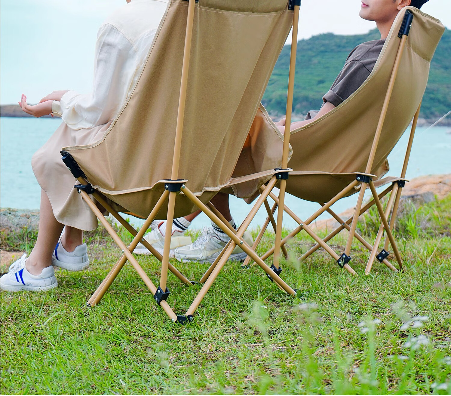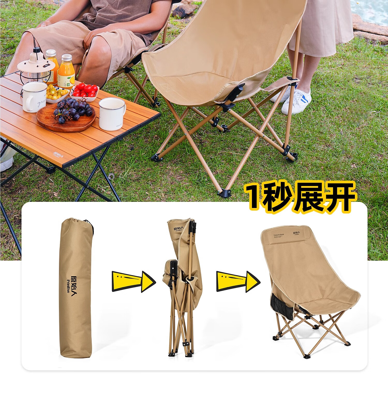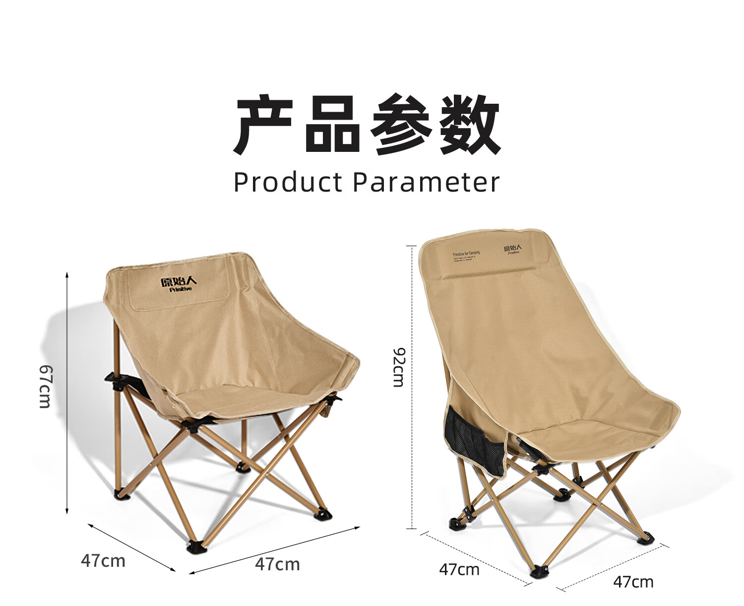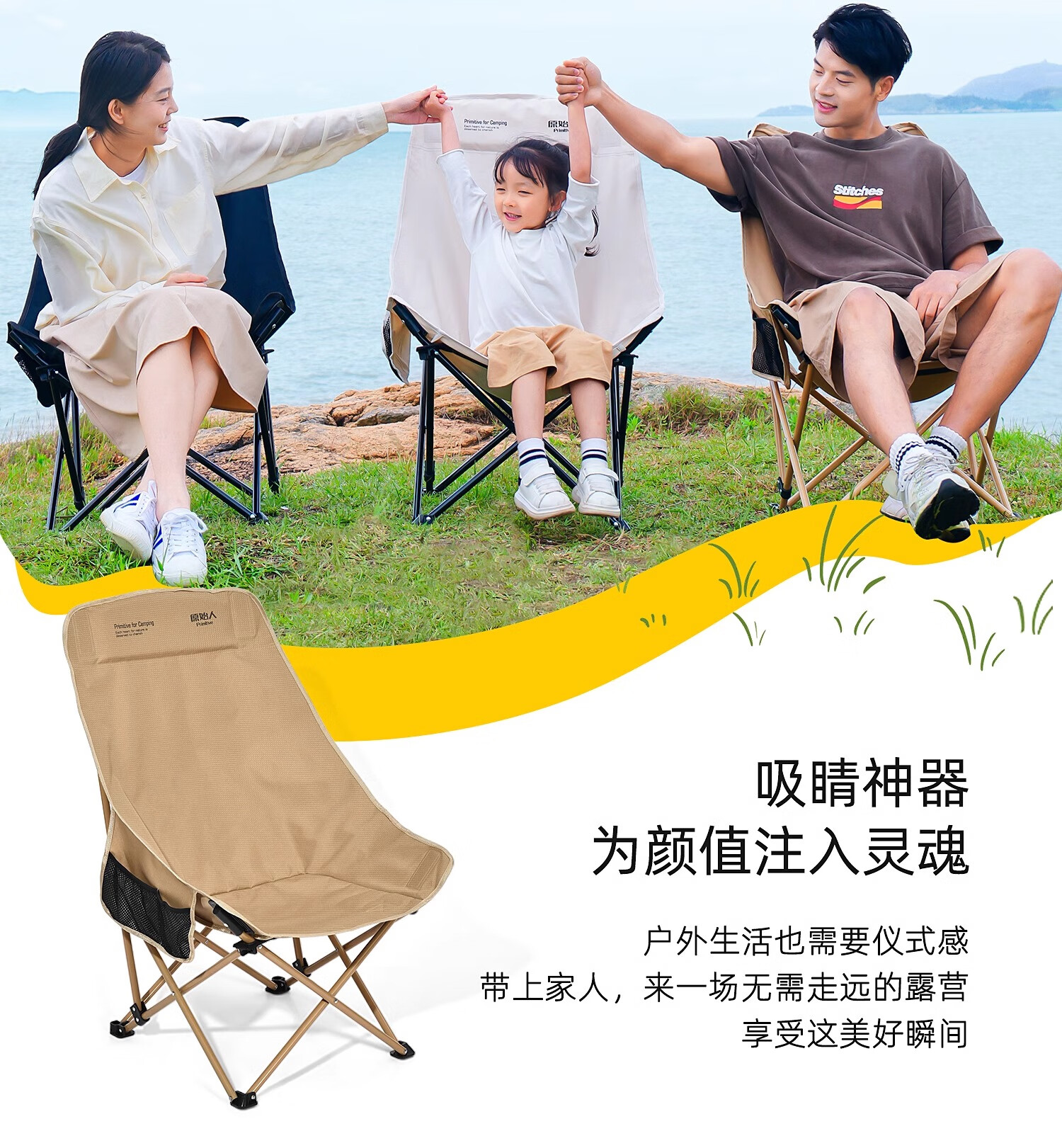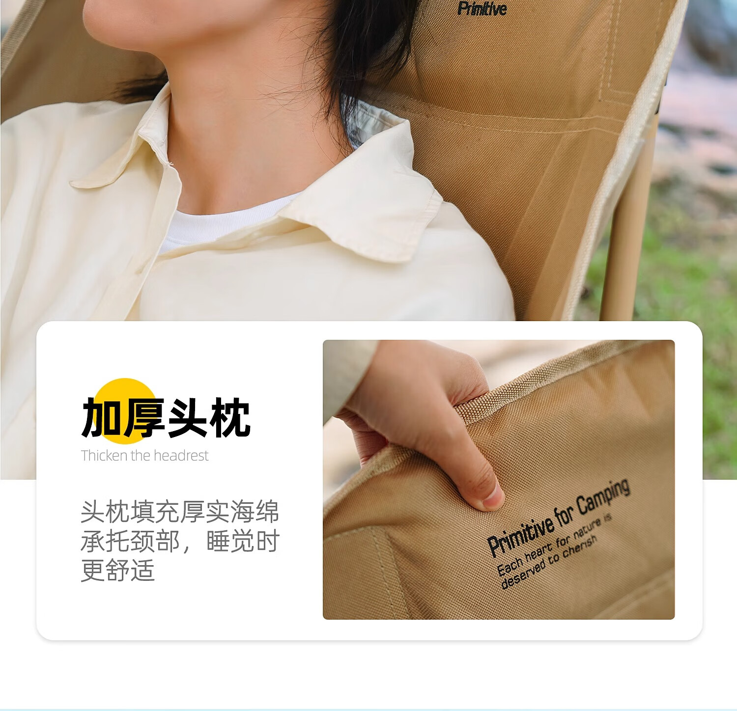 原始人户外折叠椅月亮椅露营折叠椅子便携式躺椅沙滩钓鱼椅凳野餐桌椅 经典款加高黑色-五层夹棉