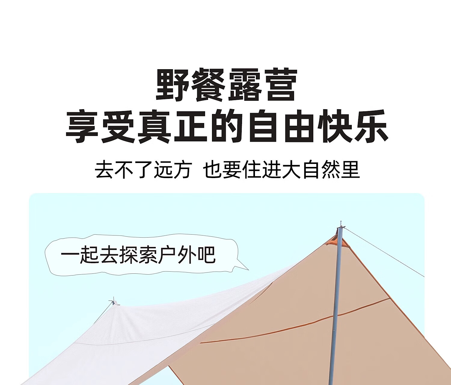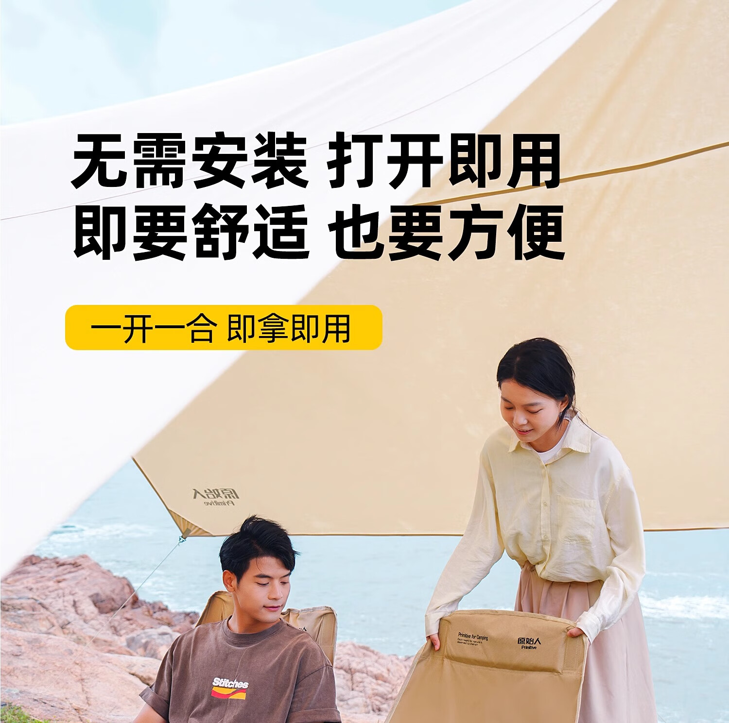 原始人遮阳天幕帐篷户外黑胶涂层沙滩遮阳棚蝶形防雨防晒露营装备 20平方-黑胶奶油咖【家庭出游】