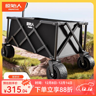 原始人露营推车户外营地拖车便携折叠手推野餐野营快递手拉车遛娃小拉车 300L 聚拢款曜黑-特粗钢架+双刹万向快拆越野轮