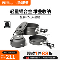 牧高笛(MOBIGARDEN)极宴套锅 户外露营便携炊具2-3人铝合金煎盘水壶煮面锅极宴 2-3人套锅