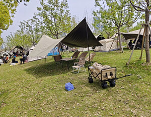 露营车100字评价 这款露营车设计实用,大容量双层牛津布车斗,轻松装下帐篷、炊具等装备,承重能力强。加粗钢架结构稳固,万向轮灵活转向,沙地、草地都能拉。折叠后体积小巧,可立式收纳不占空间。缺点是自重略大,爬坡时稍费力,且无刹车系统,陡坡需注意控制。性价比高,适合家庭露营或郊游搬运,大大提升出行便利性,是户外爱好者的得力助手!