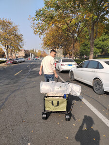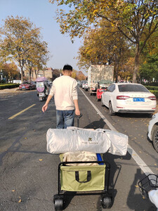京东快递,方便快捷!星际营地车容量大,装了天幕、帐篷、月亮椅4把,折叠椅1把,蛋卷桌一张!还装了一箱水。拉起来轻松,平稳!个人觉得非常地赞!!!