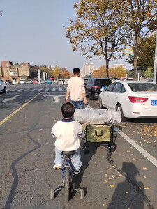 收到货以后,迫不及待的就打开使用吧,整体车的质量比较扎实,但带来的一个问题就是车比较重。收纳方面感觉也还好,但后备箱小的可能觉得有点儿占地方,车拖拉起来比较轻松,轮子也比较大,过坎过坡稳定性还是比较好。