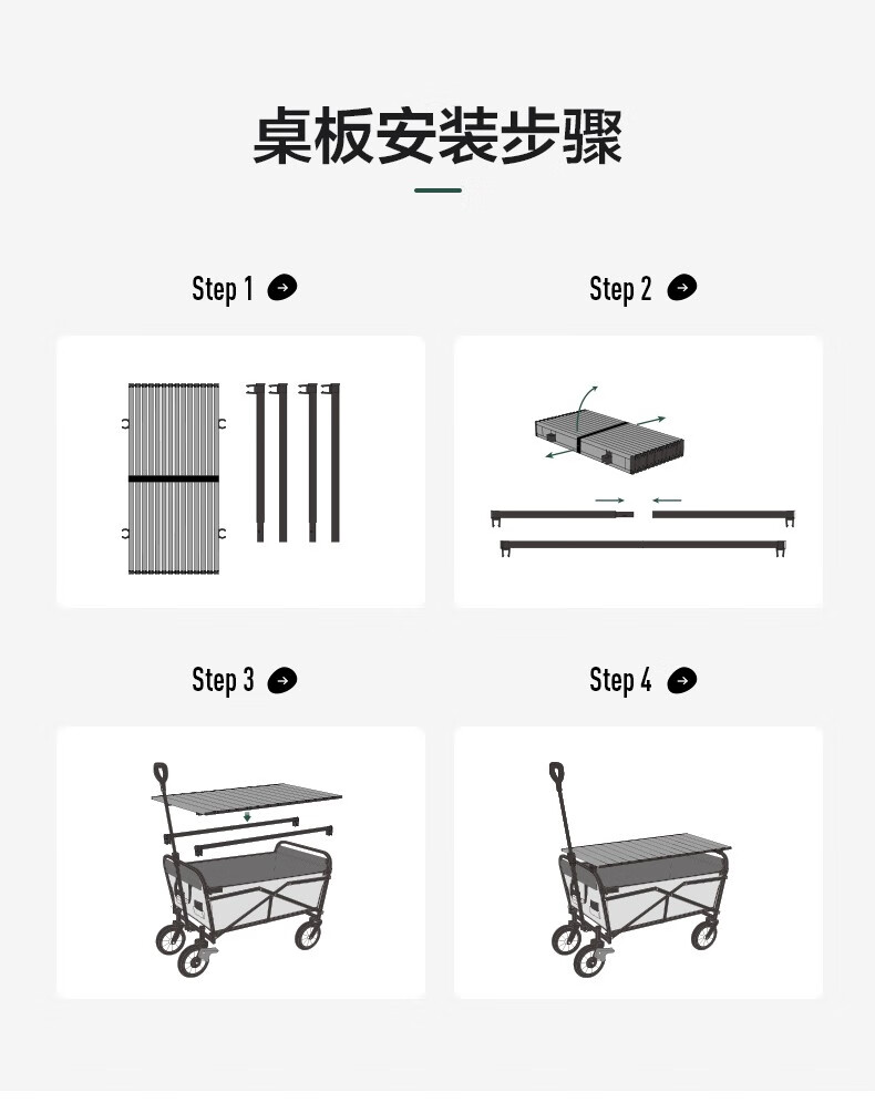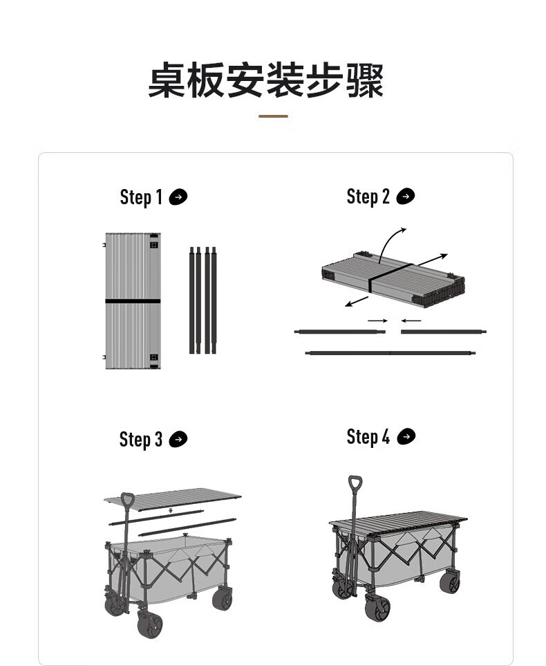 北欢bavay户外露营推车聚拢型营地拖车野营餐拉车F01 300L -遮阳款-经典米-三件套