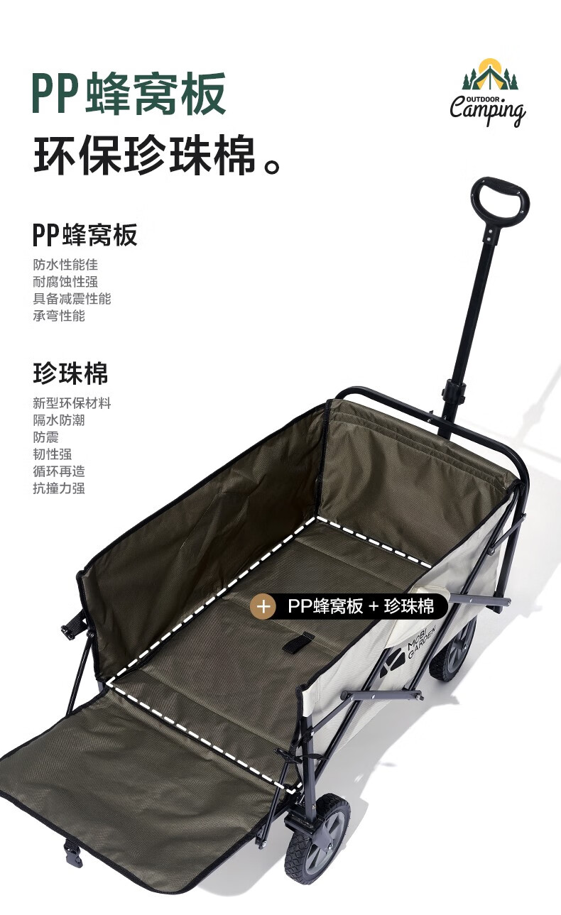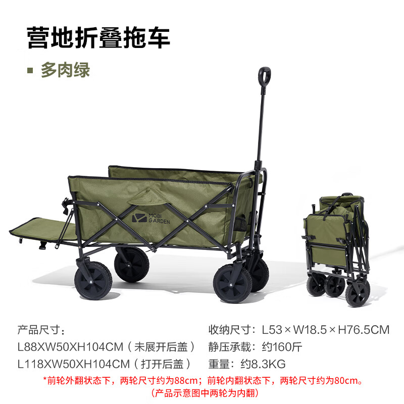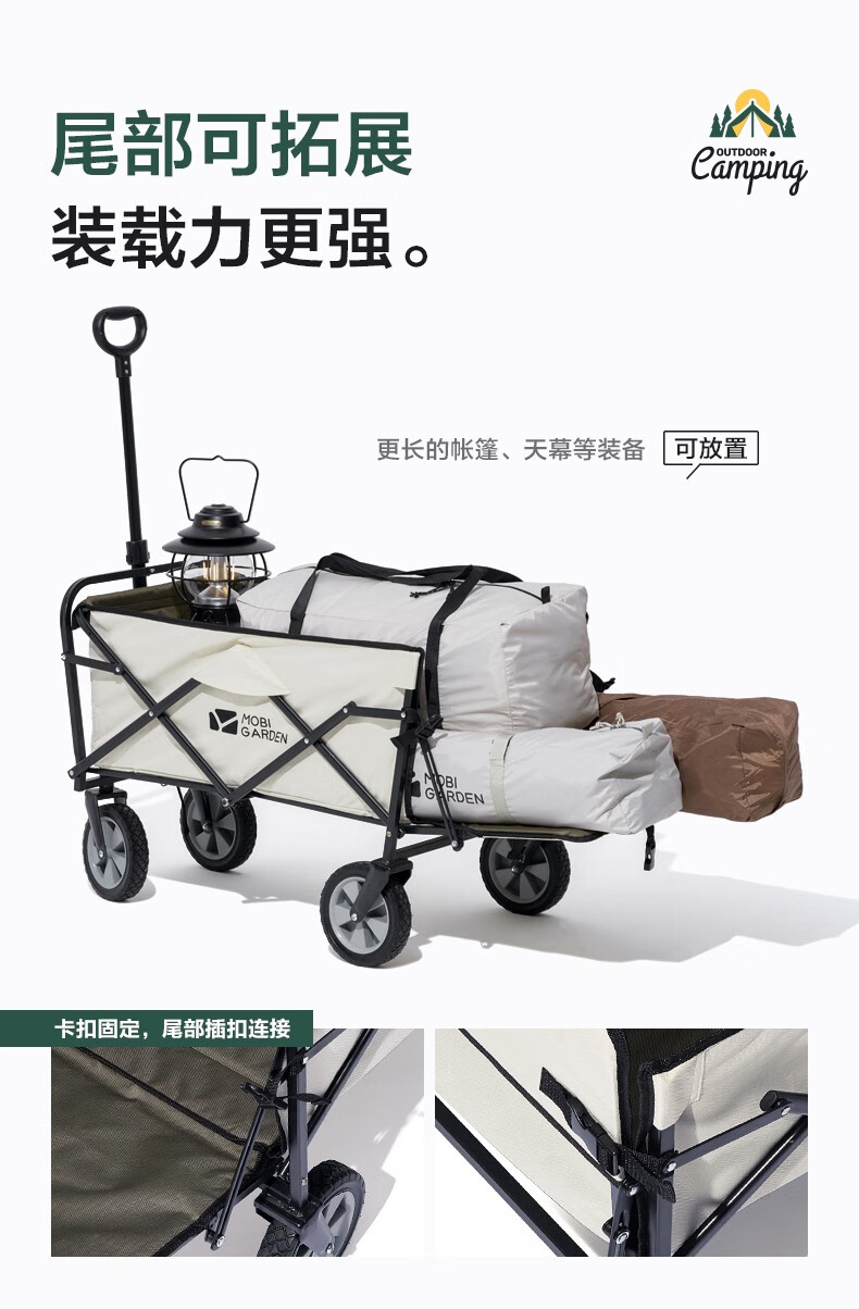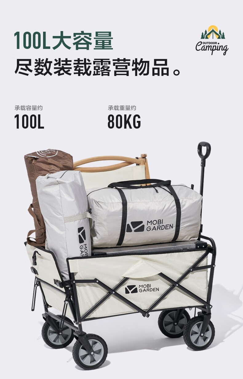 牧高笛(MOBIGARDEN) 推车大营地车户外手推车便携式露营车折叠野餐小拉车 营地车星际 100L 无刹车 -多肉绿(拓展款)