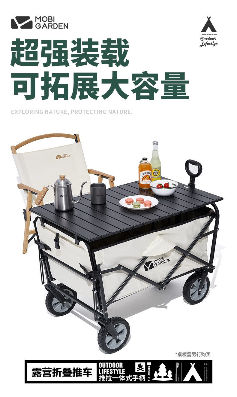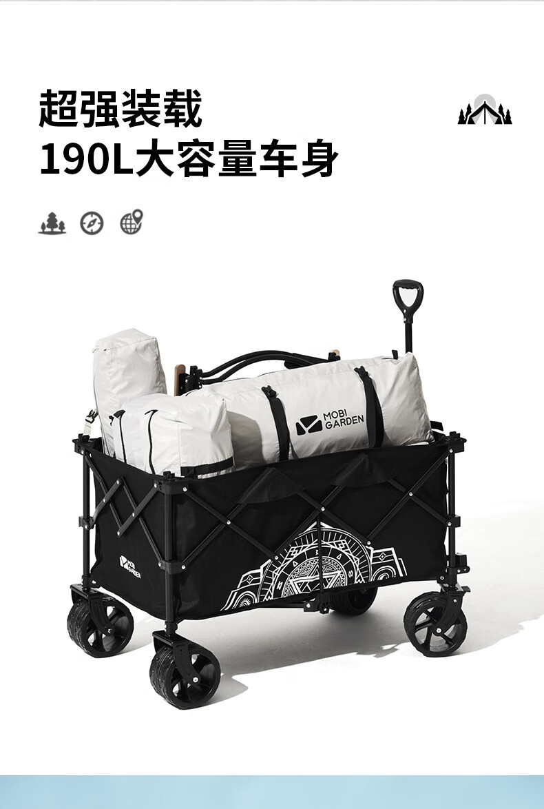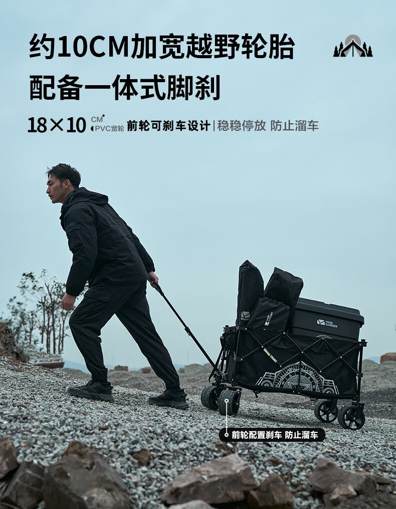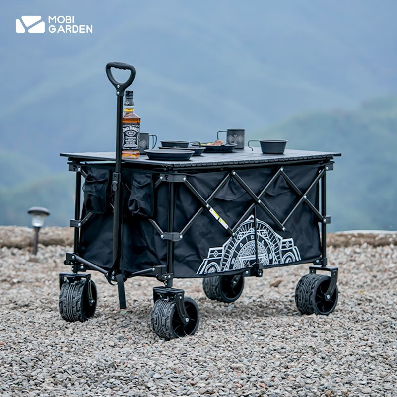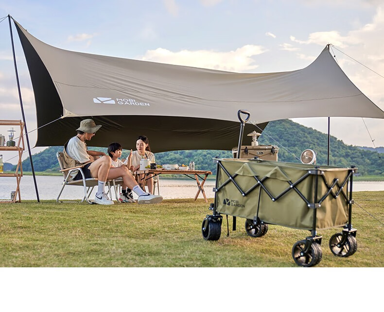 牧高笛(MOBIGARDEN) 推车大营地车户外手推车便携式露营车折叠野餐小拉车 营地车星际 100L 无刹车 -多肉绿(拓展款)