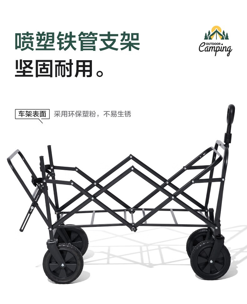 JEEP吉普露营车户外可折叠手推野餐营地超大拖车拉杆摆摊小推车 绿咖色