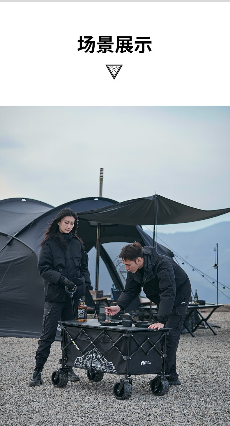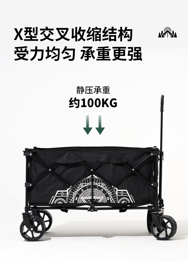 牧高迪户外露营车超高颜值,超强质感,宽轮设计更加稳固,前轮刹车制动,户外不担心停不稳,钢架结构更是提升了质感,科技面料结实耐磨,黑色更显颜值,时尚且精致,容量超大,户外用品基本都能装下,车身灵活,拖拽自如省力,京东物流又好又快,强烈推荐