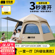 探险者帐篷户外露营便携天幕帐篷速开加厚黑胶防雨防晒野营装备 【钛黑款六角帐篷】6-8人+防潮垫