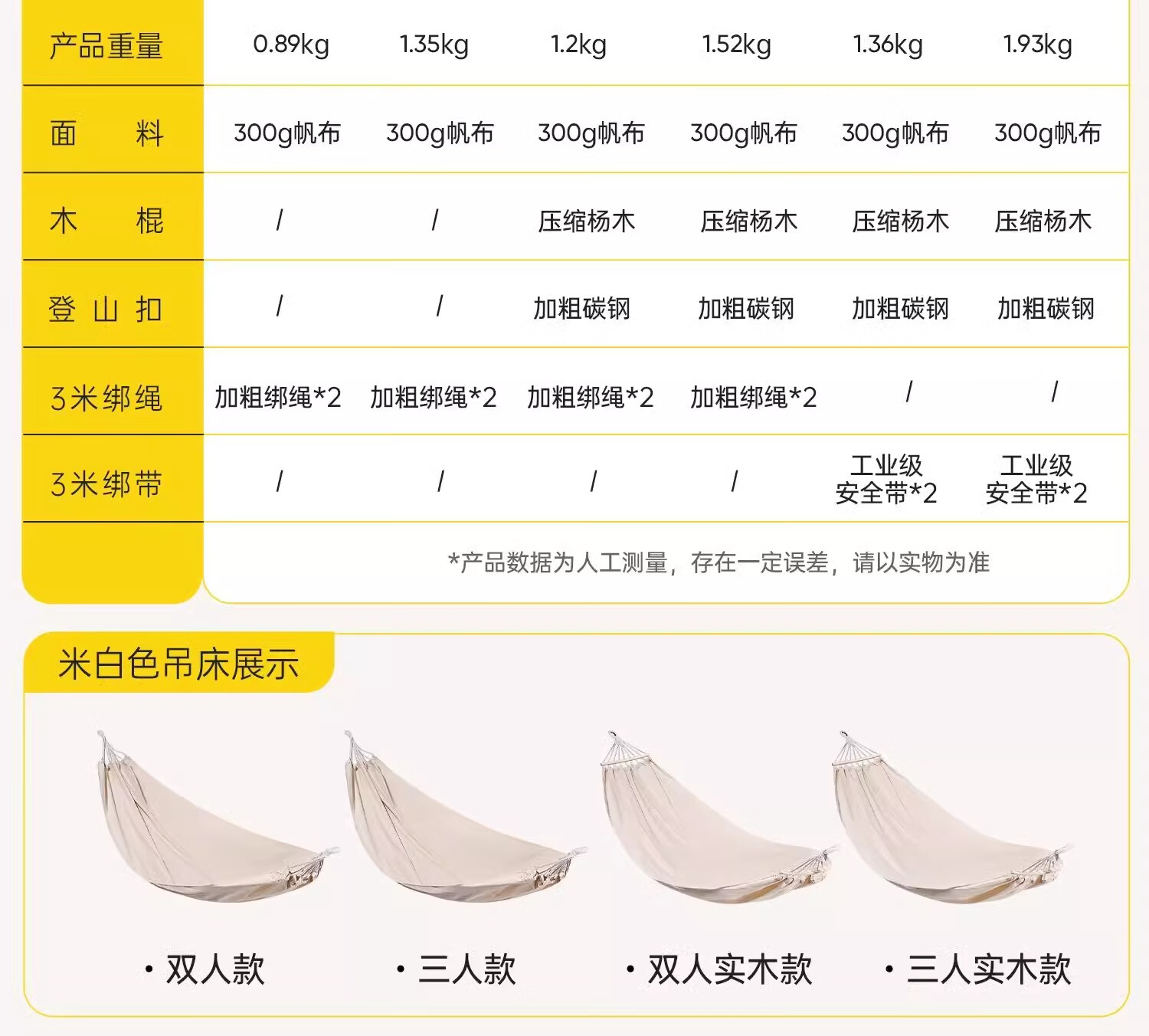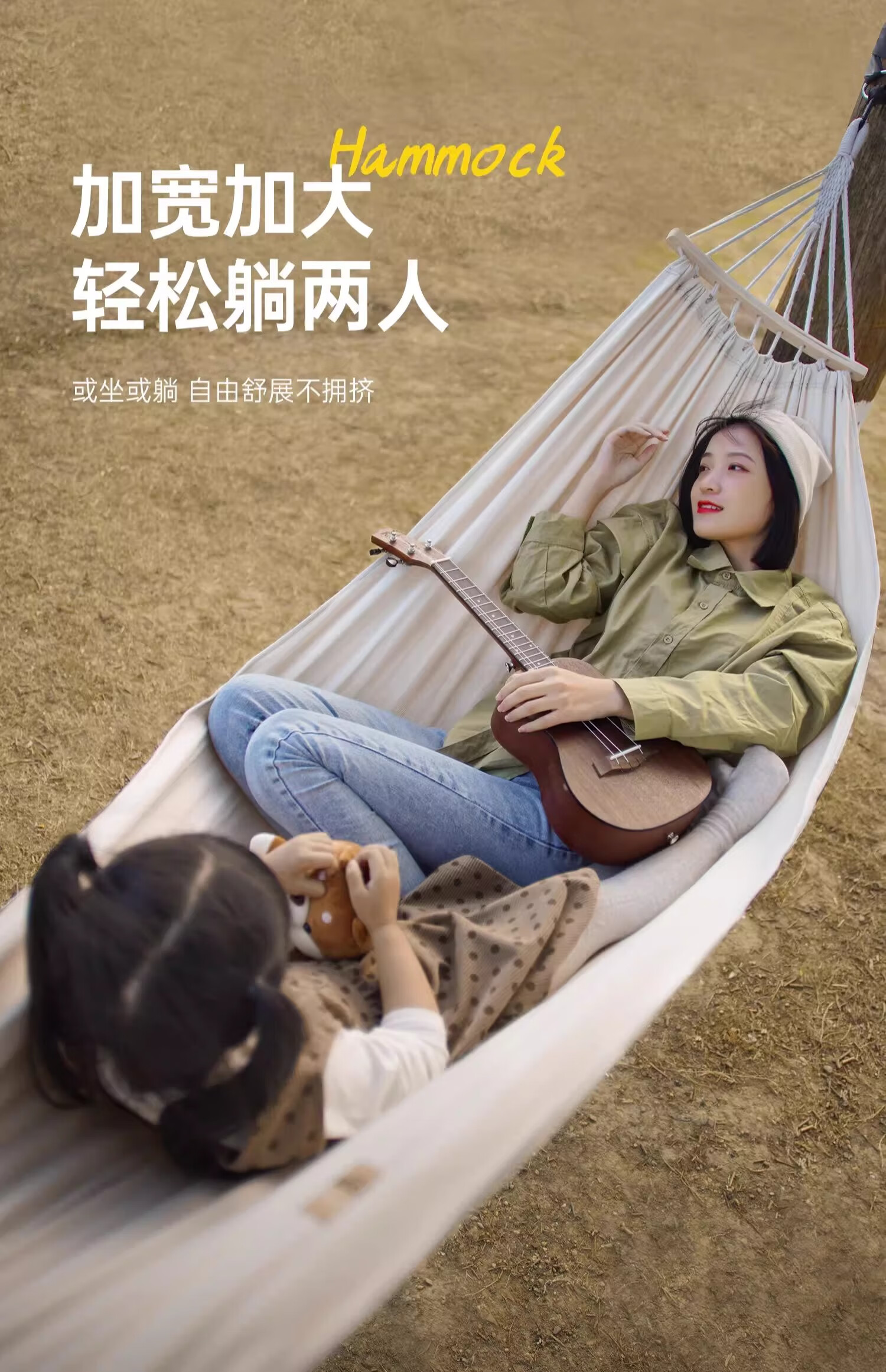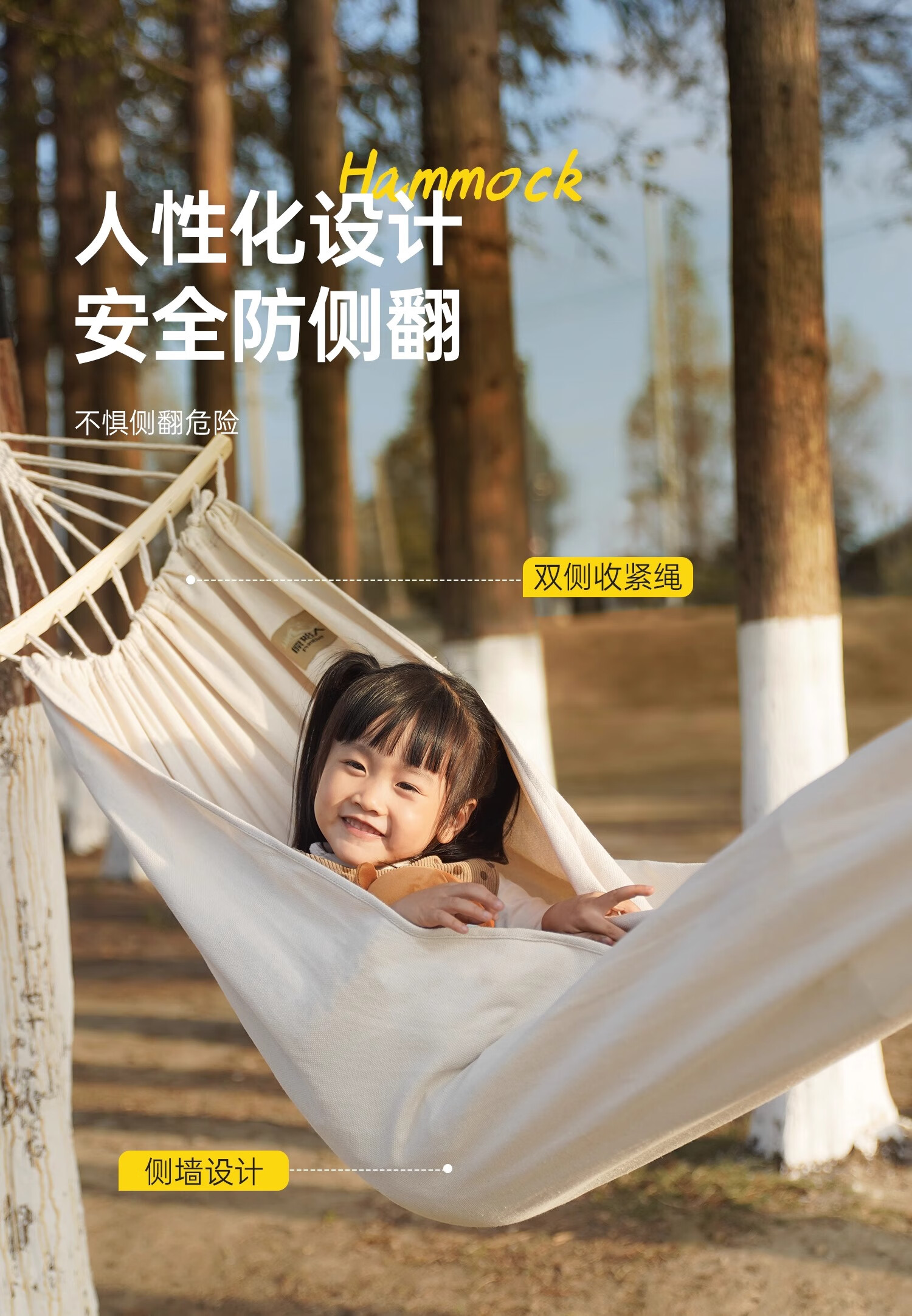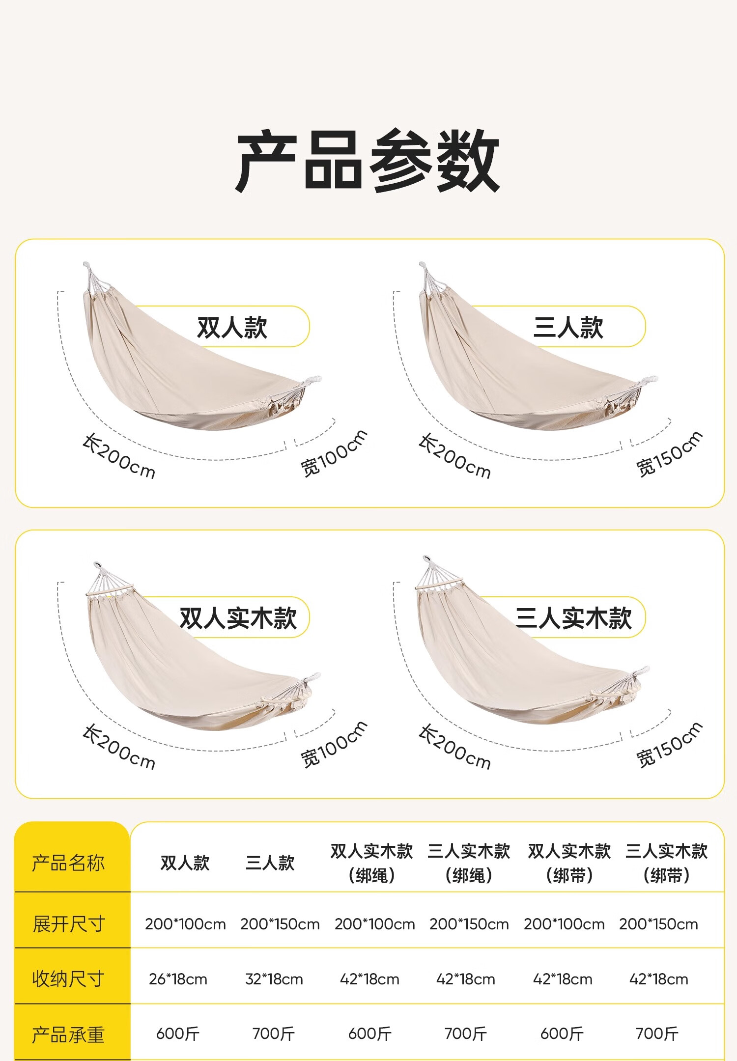 原始人吊床户外成人加厚荡秋千双人防侧翻寝室学生摇床网床野外掉床 双人 米白【承重600斤】送绑绳