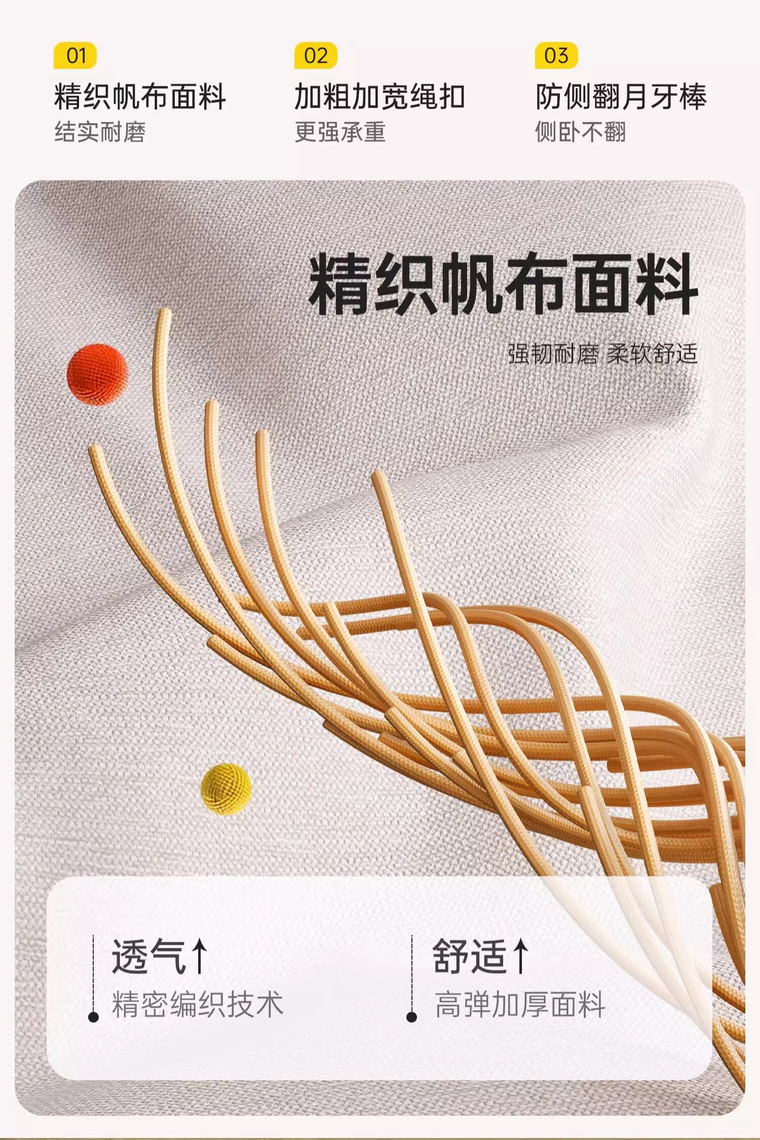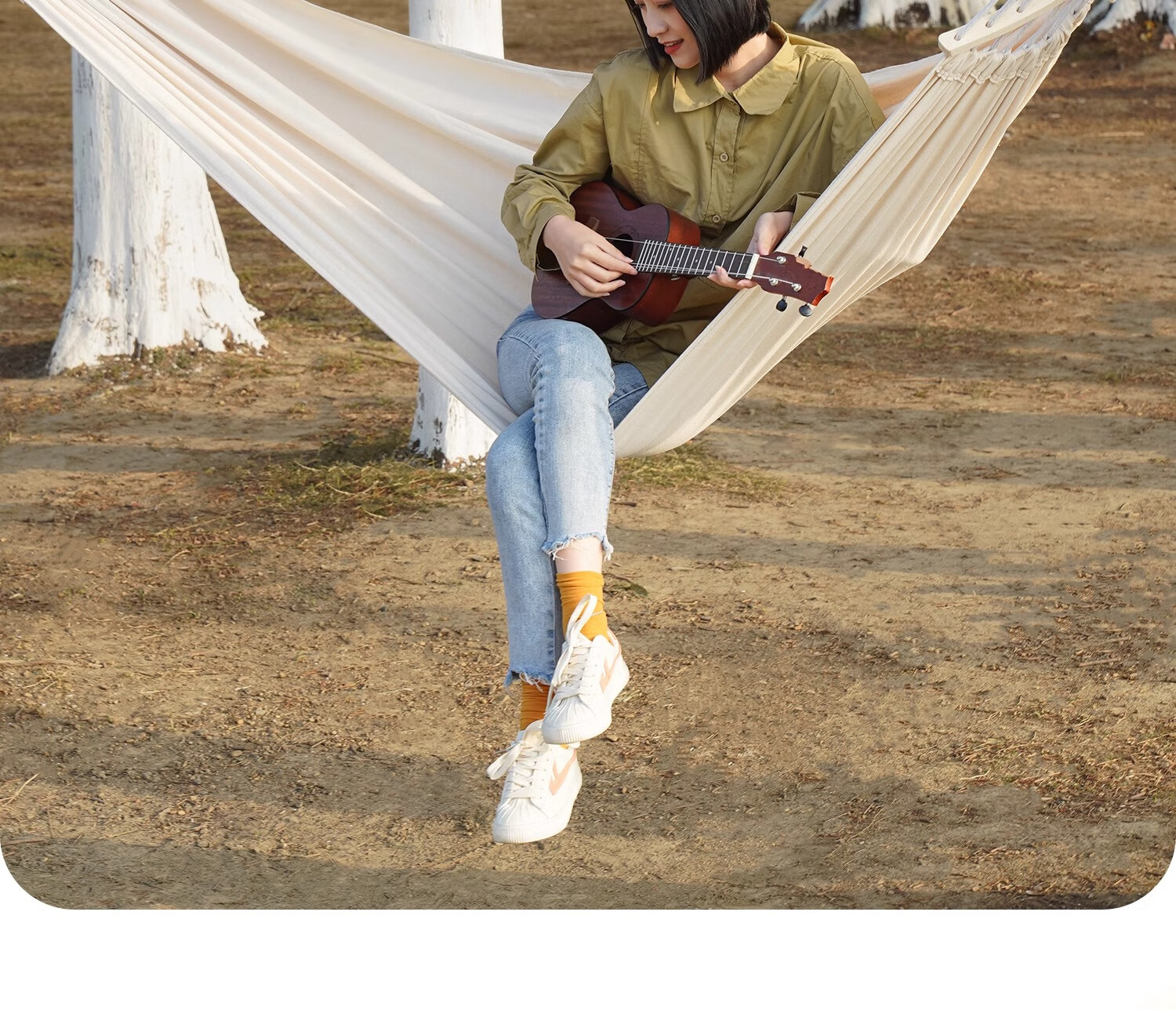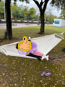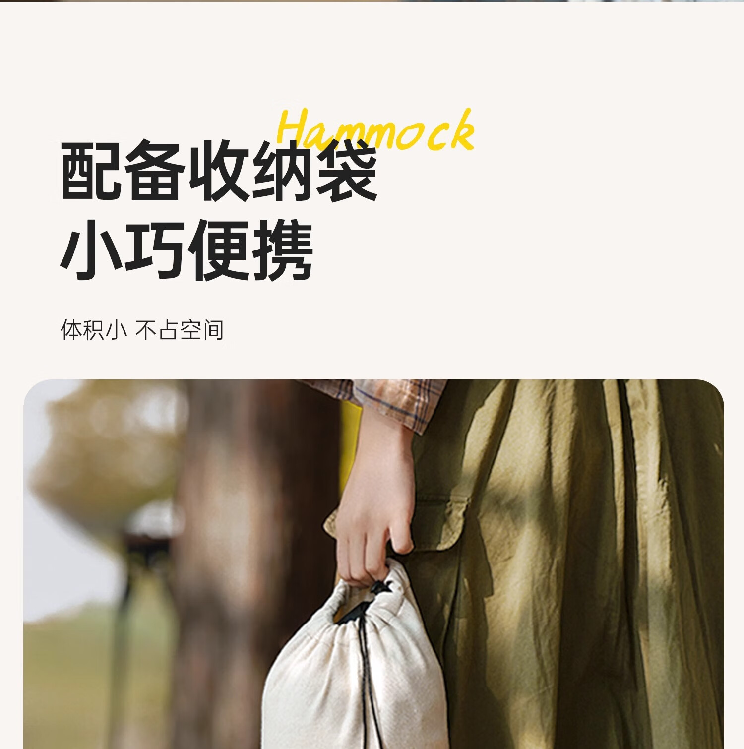 之前买过一个双人位的,质感好,价格划算,趁618再囤一个,这下两个娃就不用挤在一起了,吊床真的超级推荐,主打户外舒服又不闷热,我是户外装备齐全,但我真的喜欢吊床多过帐篷,天气炎热帐篷里面闷热的很,但是吊床更加体验大自然的风!上次大宝发高烧,不想让他在家躺着,选择去户外睡吊床,没一会了精神状态都好多了!