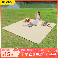 原始人野餐垫防潮垫便携露营垫铝膜户外露营加厚耐磨轻便折叠四季通用 1.5*1.8卡其条纹彩膜款-加厚防水