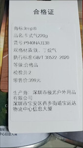 货收到了 质量看着就很好 肯定抗烧!吉普大品牌 有商标 有合格证!买的放心!!