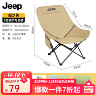JEEP折叠椅户外露营便携靠背钓鱼椅折叠椅懒人椅家庭休闲月亮椅 4档高背椅细沙黄