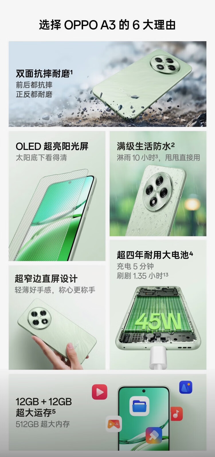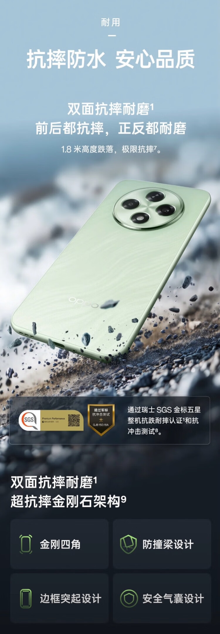 OPPOA3i Plus超硬核耐用战神 全面抗摔耐磨 新品5G老人智能手机 水墨黑 12GB+256GB(赠90天碎屏保)