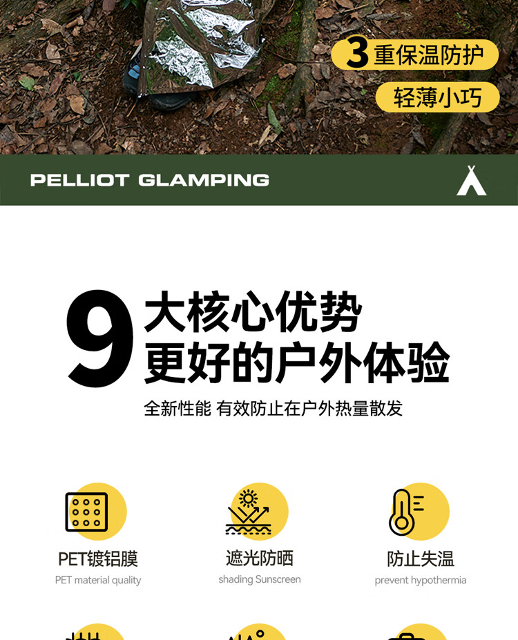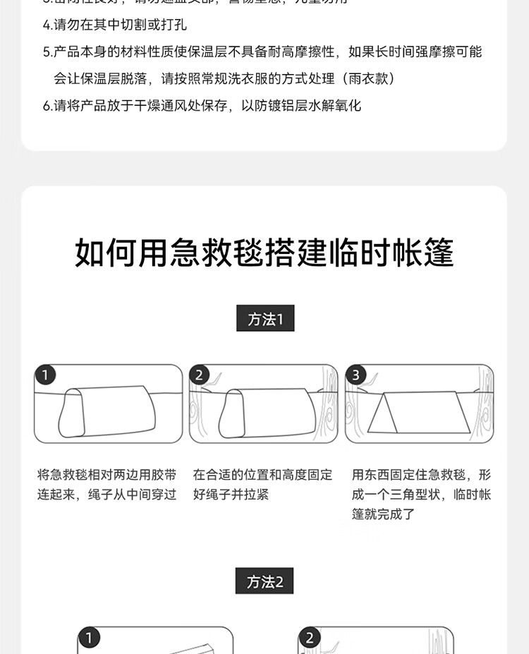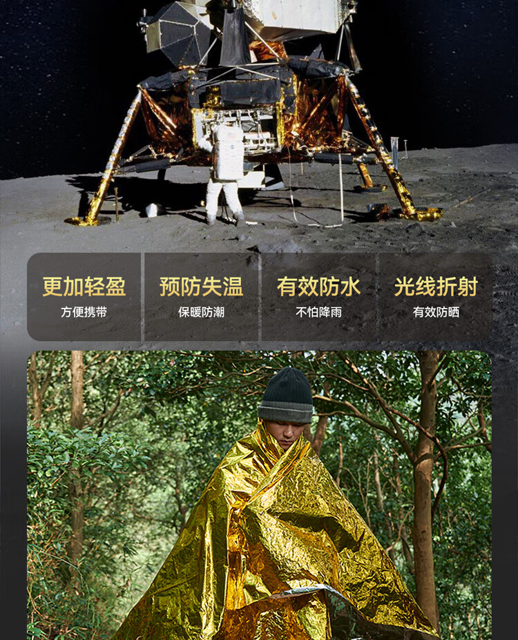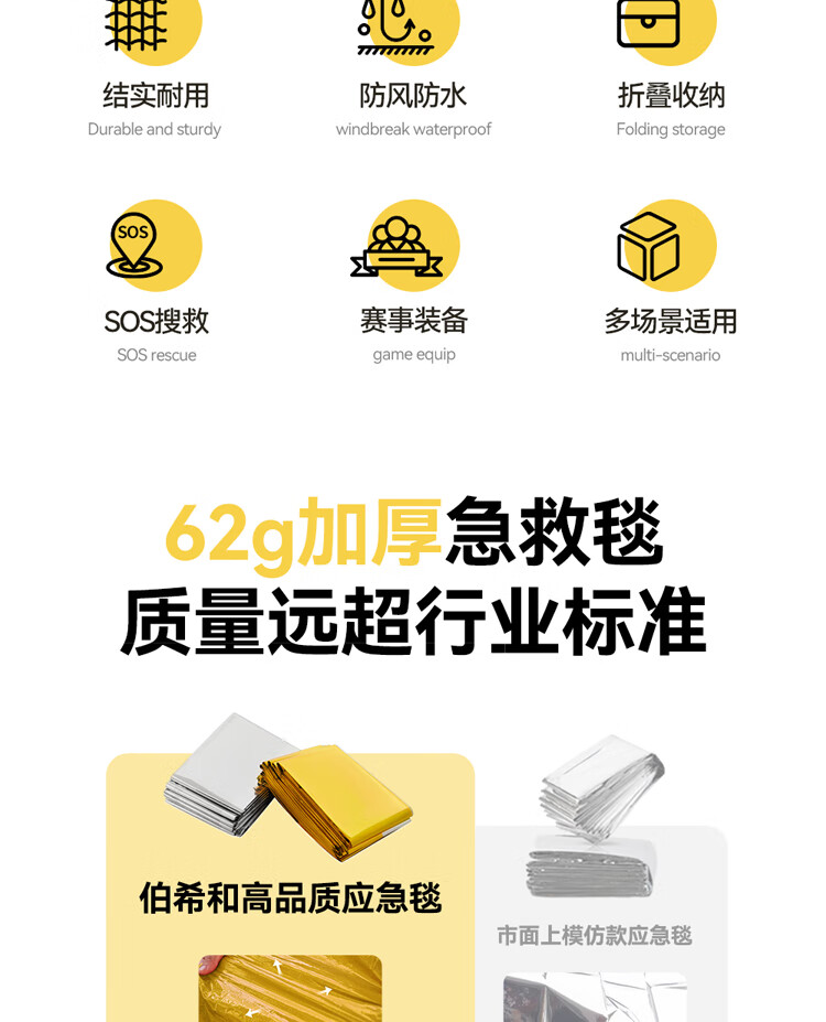 1. 户外必备!轻薄不占地,保温防风超给力,紧急情况太实用~ 2. 质感扎实不划手,防水又保暖,关键时刻能护命,性价比绝了! 3. 小小一张超便携,应急保暖、防晒都能用,全家出游必带好物!