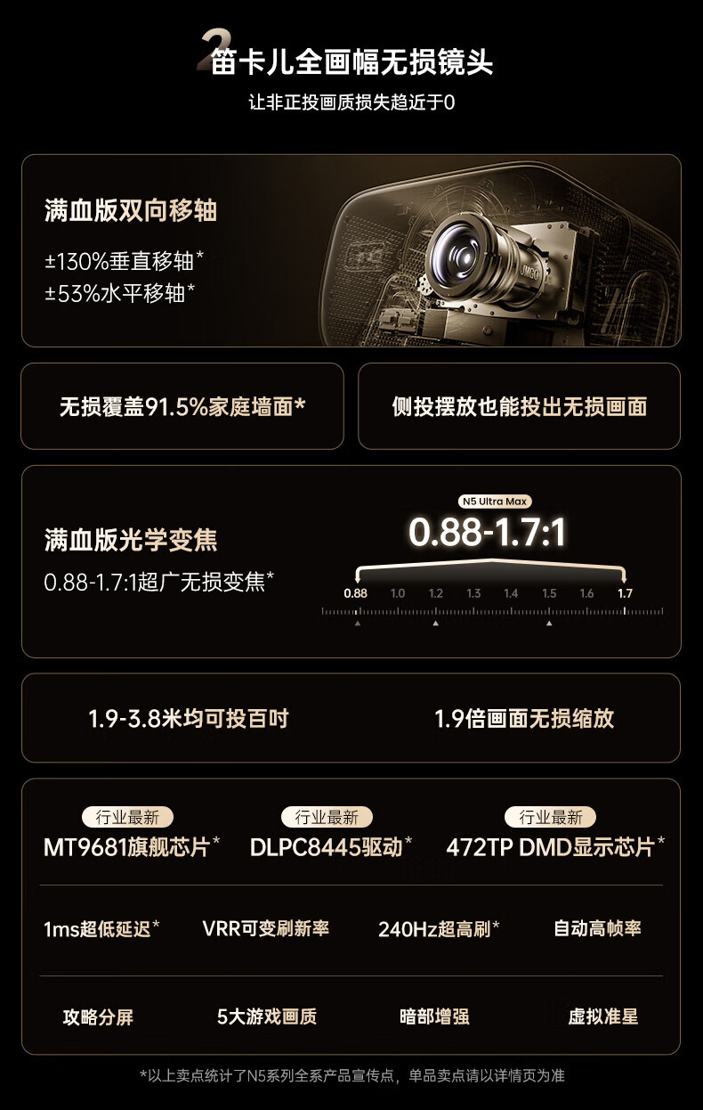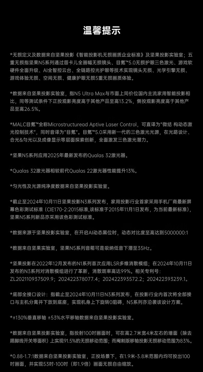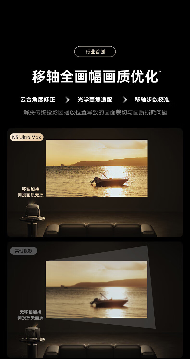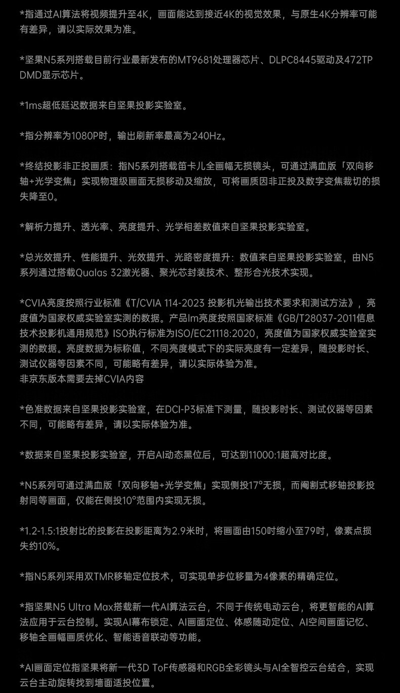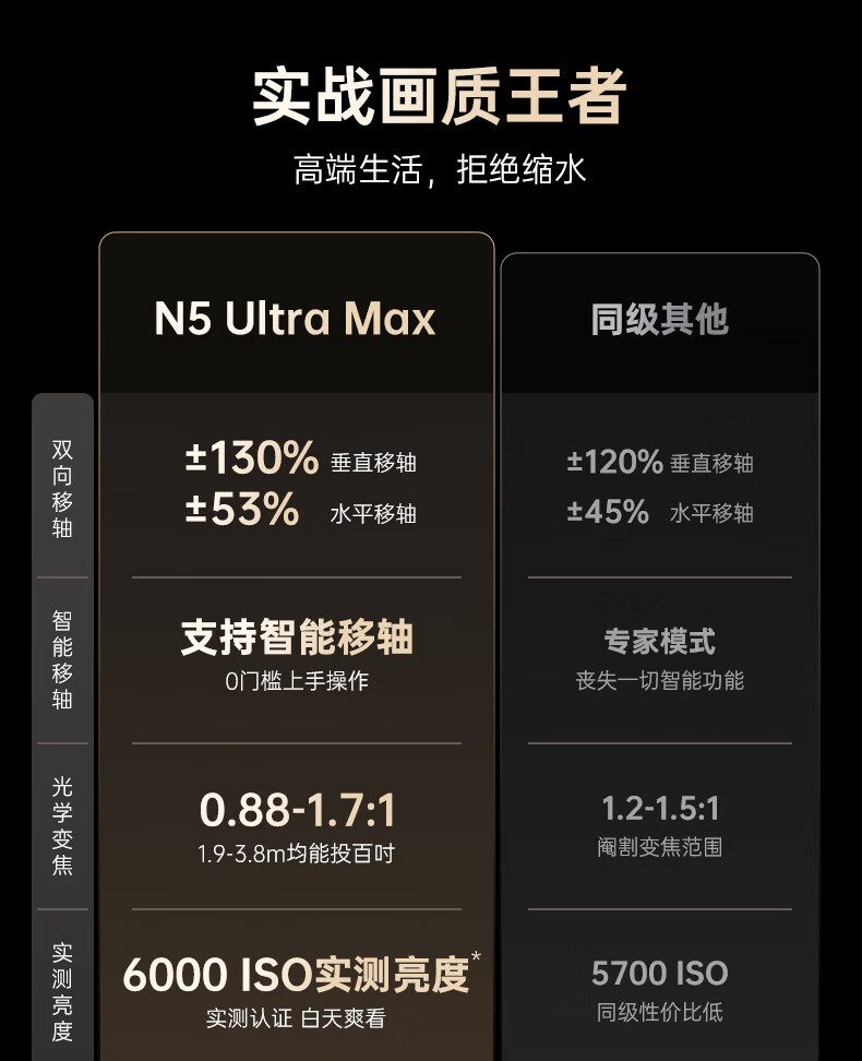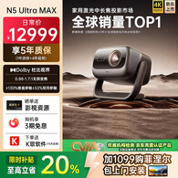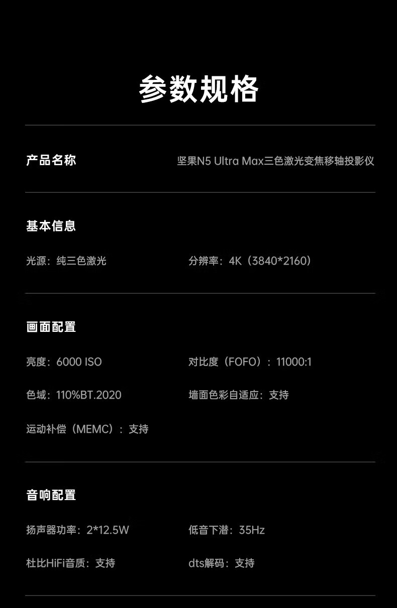 坚果投影N5 Ultra Max 4K超高清三色激光云台投影仪 变焦自动移轴家用智能高清家庭影院投影机 坚果N5 Ultra Max【5000CVIA】