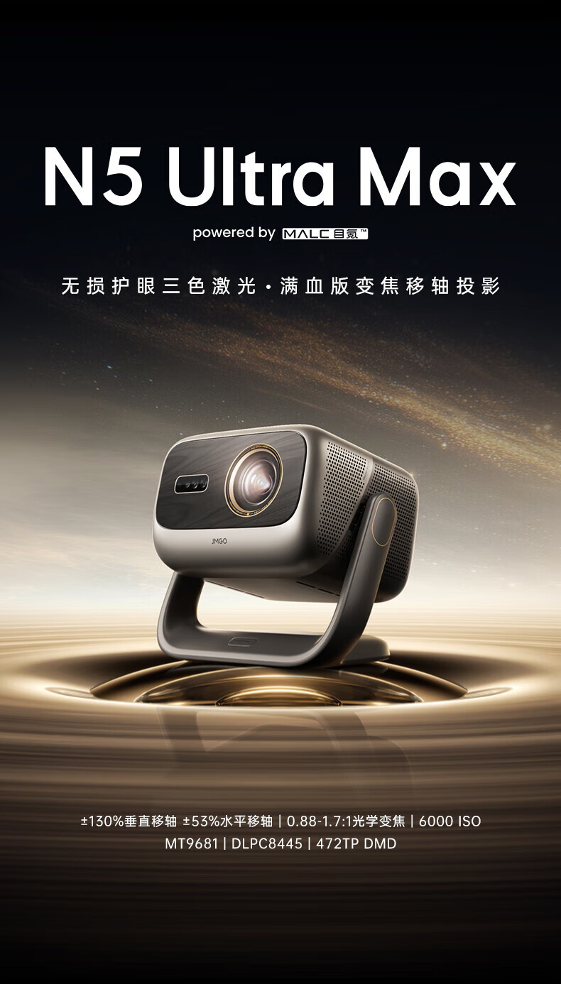 坚果投影(JMGO)N5 Ultra Max 4K超高清三色激光云台投影仪 变焦自动移轴家用智能高清家庭影院投影机 N5Ultra max 【官方标配】