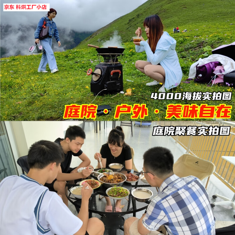 科烘柴火炉围炉火锅烧烤庭院户外便携最新款无烟气化猛火不锈钢柴火灶 标准版柴火灶+烧烤盘+锅架配件