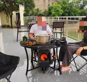 终于可以完成围炉煮茶了。这个炉子燃烧的很彻底,一点烟都没有。院子里太适合了。晚上再来搞个烧烤。非常nice。