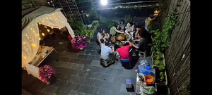 我的露台比较大,就缺少这样一个好移动好看的柴火灶,这里时常成为我们朋友聚会喝小酒的地方,柴火做美食才有它地道的味道,再也不需要弄那么大一个土灶,搞得邻居怨声载道了,无烟真舒服,八个人围炉火锅都可以