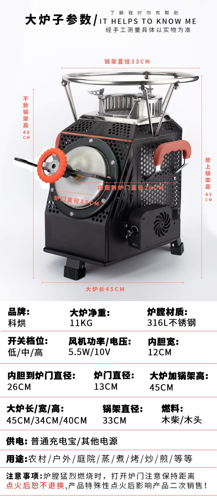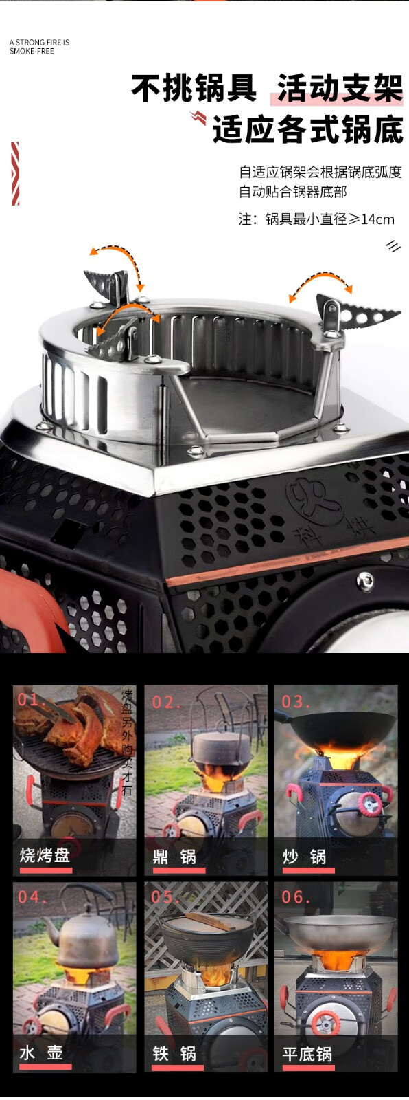 科烘无烟柴火灶庭院农村家用柴火炉野营户外便携气化炉子旅行新款别墅 2026新款柴火炉+大锅架