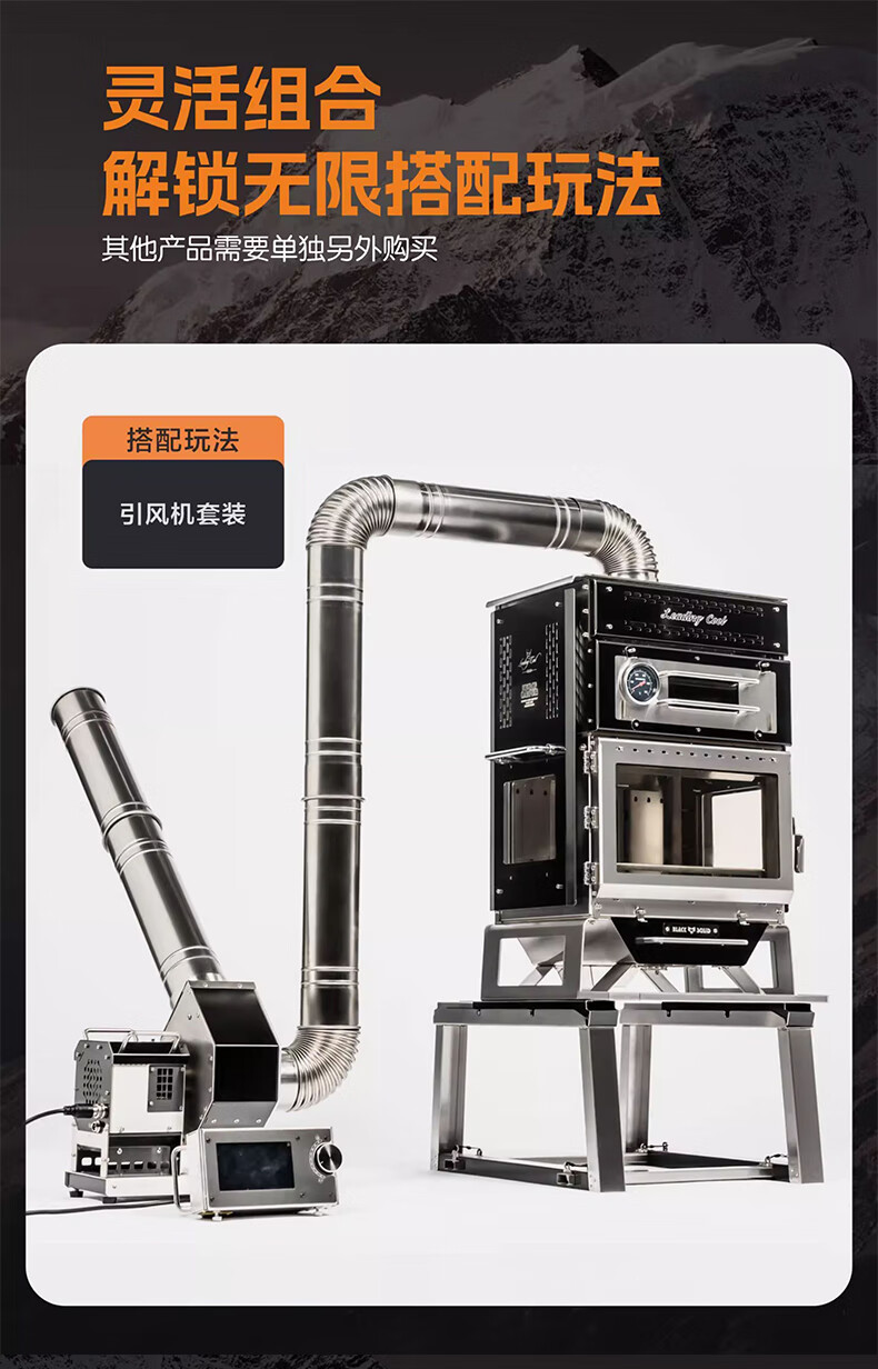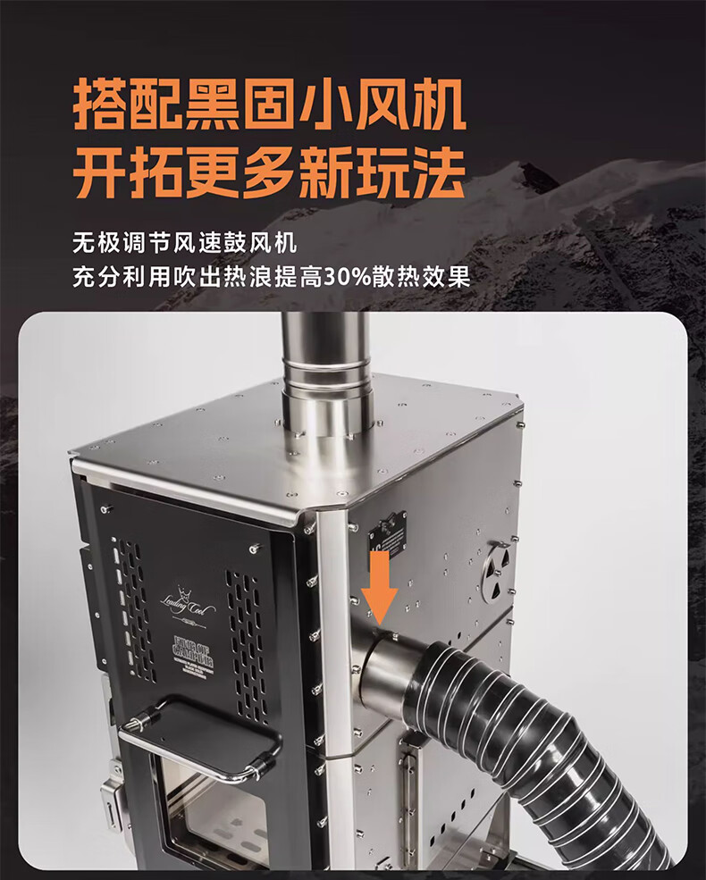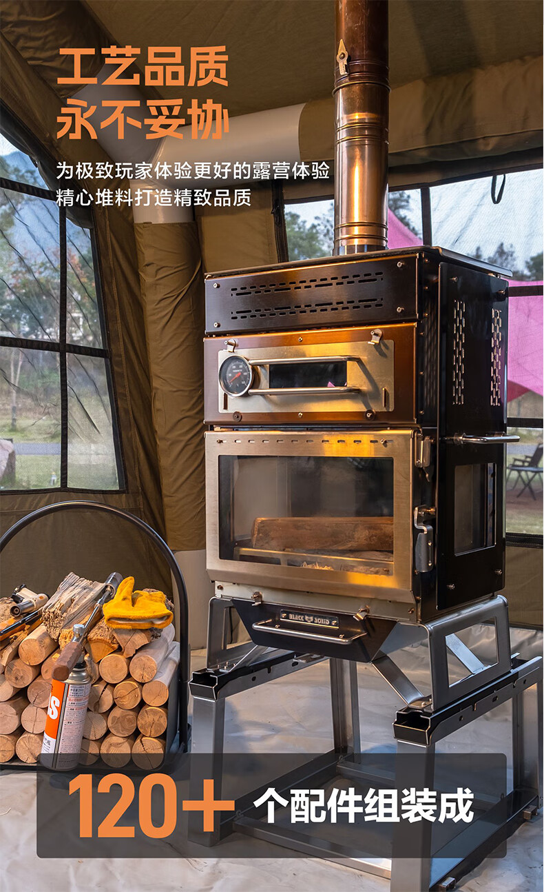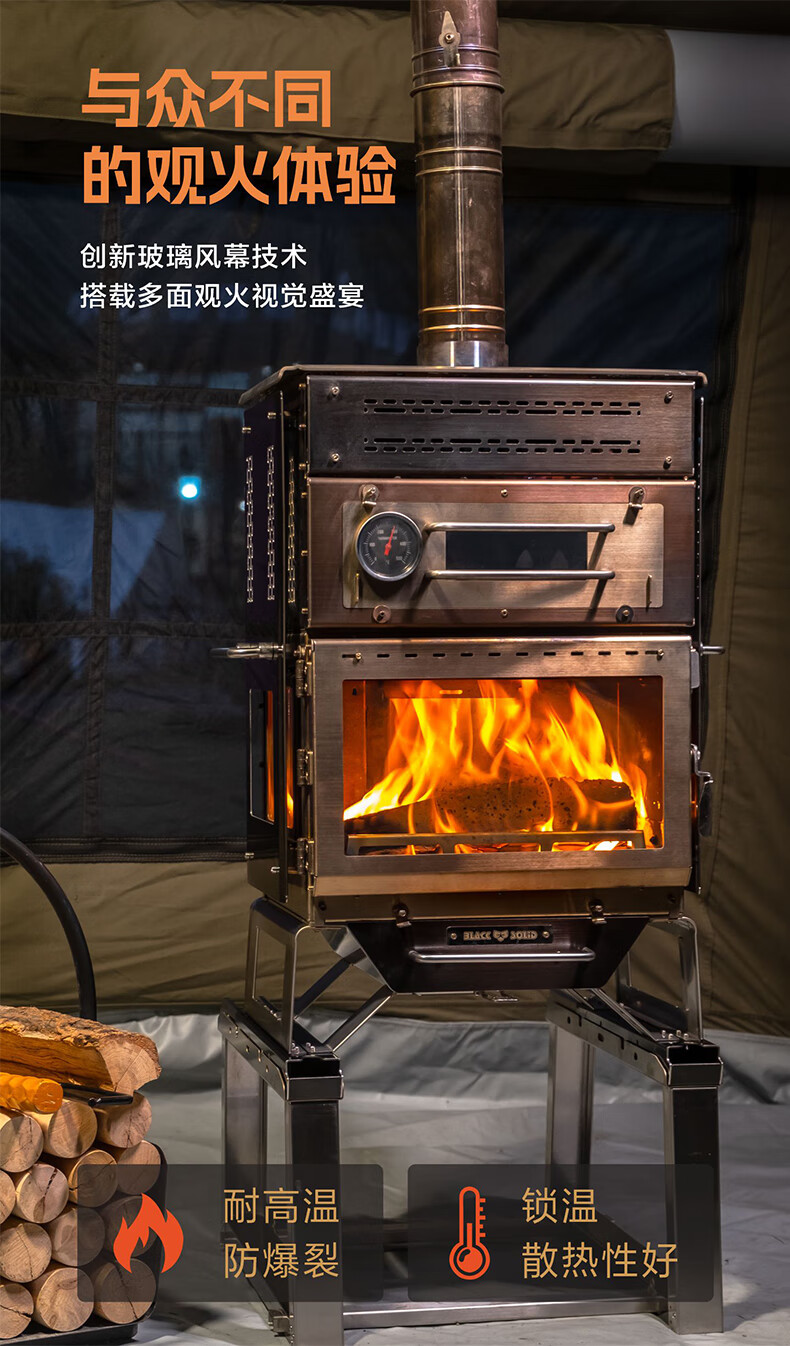 黑固 BLACK SOLID领酷不锈钢柴火炉2025新款冬季户外露营帐篷观火取暖炉带烤箱 颗粒套件