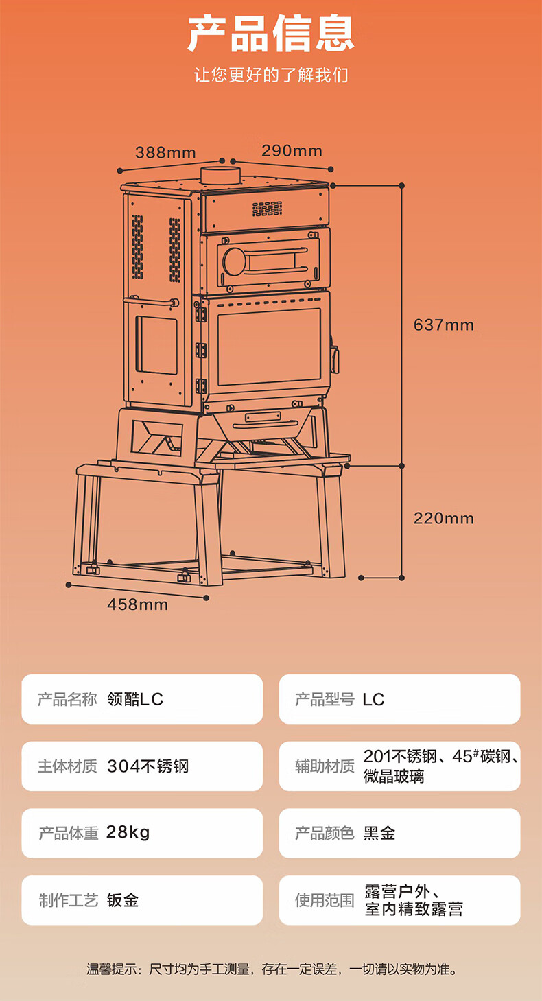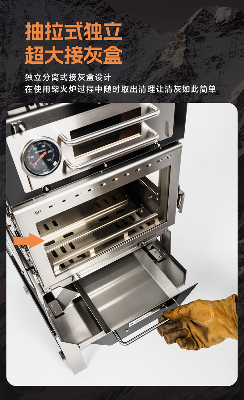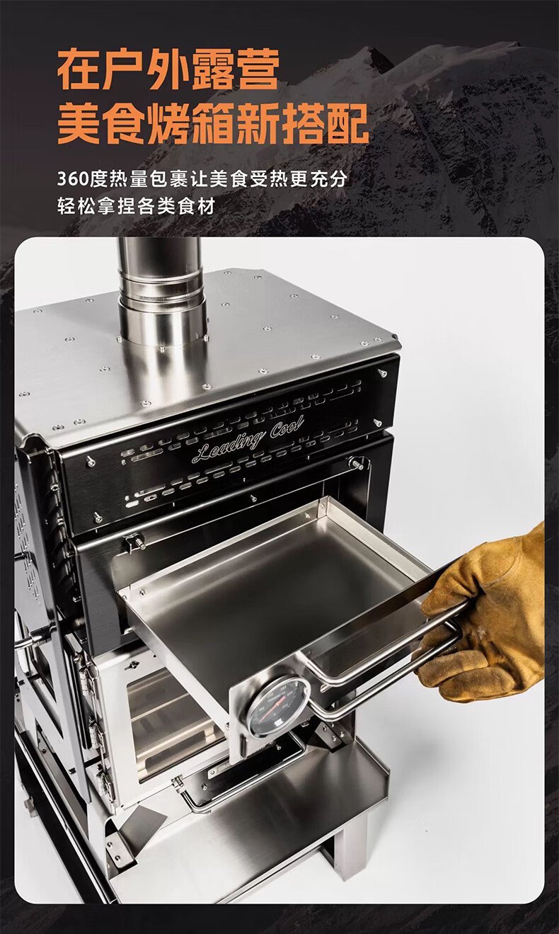黑固 BLACK SOLID领酷不锈钢柴火炉2025新款冬季户外露营帐篷观火取暖炉带烤箱 颗粒套件
