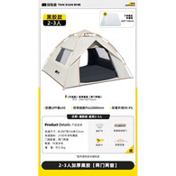 探险者帐篷户外折叠便捷式露营野营过夜自动黑胶沙滩室内 2-3人【黑胶加强防晒】两门两窗+