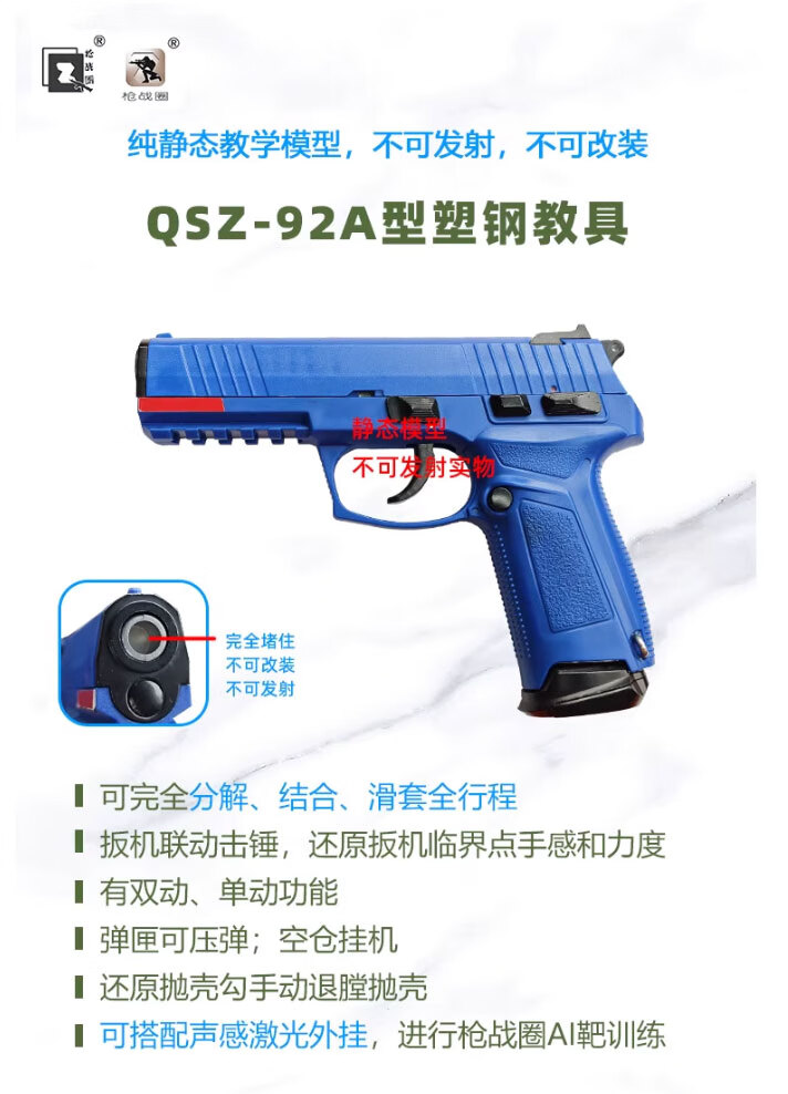 坚奋枪战圈QSA-92A分解教具模型教学AI射击靶声感外挂模拟器不可发射 92A+红激光外挂+365天会员