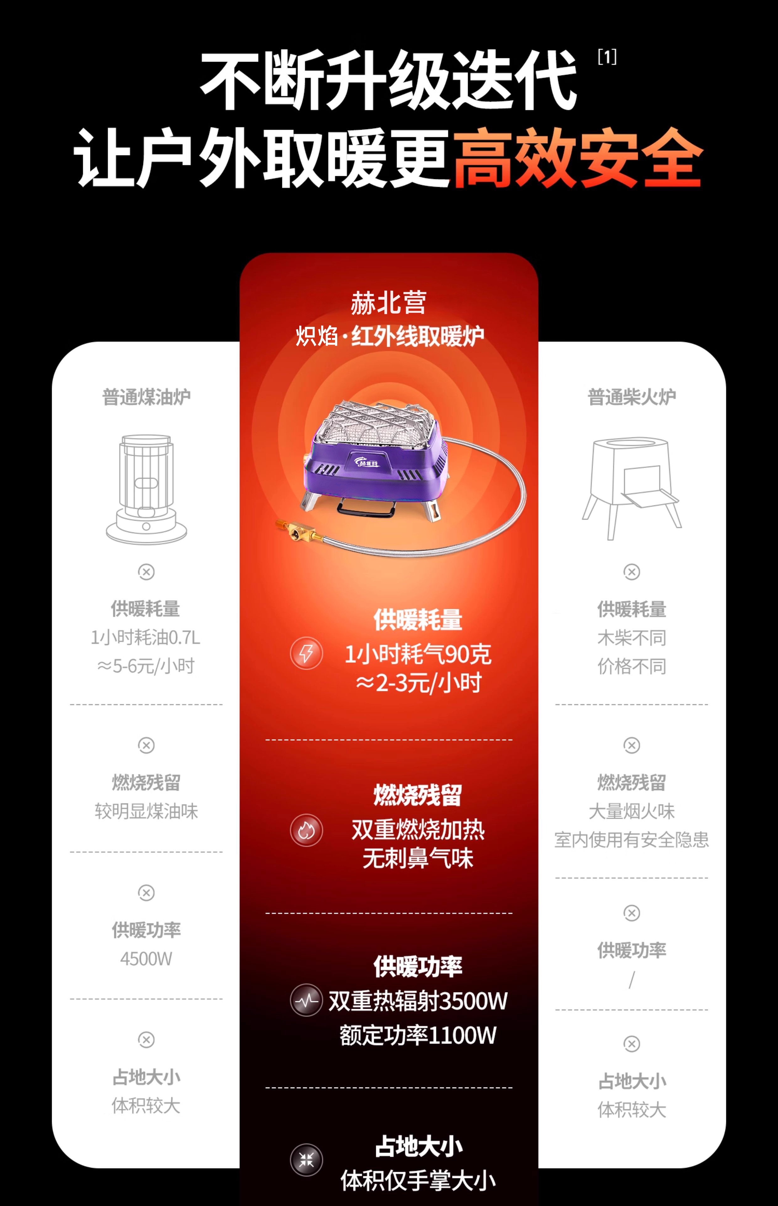 赫北营户外取暖炉起暖流露营冬天室内取暖器帐篷取暖神器便携卡式暖气炉 【标配】取暖炉(可取暖/烹茶/烹饪)