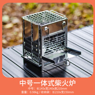 汉硕焚火台户外不锈钢烧烤炉折叠柴火炉野营取暖炉木炭烤肉炉烤架 中号-方形一体式柴火炉