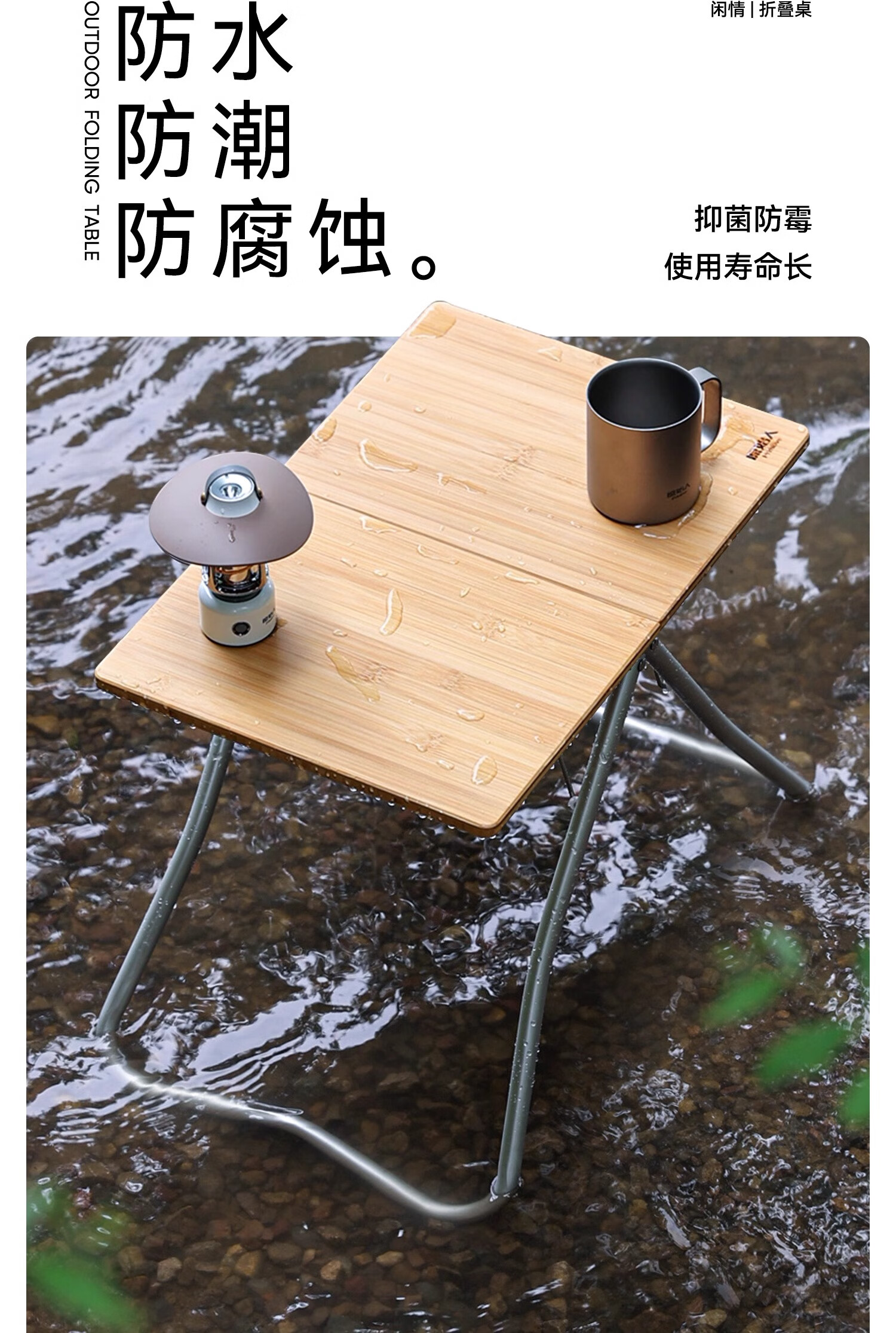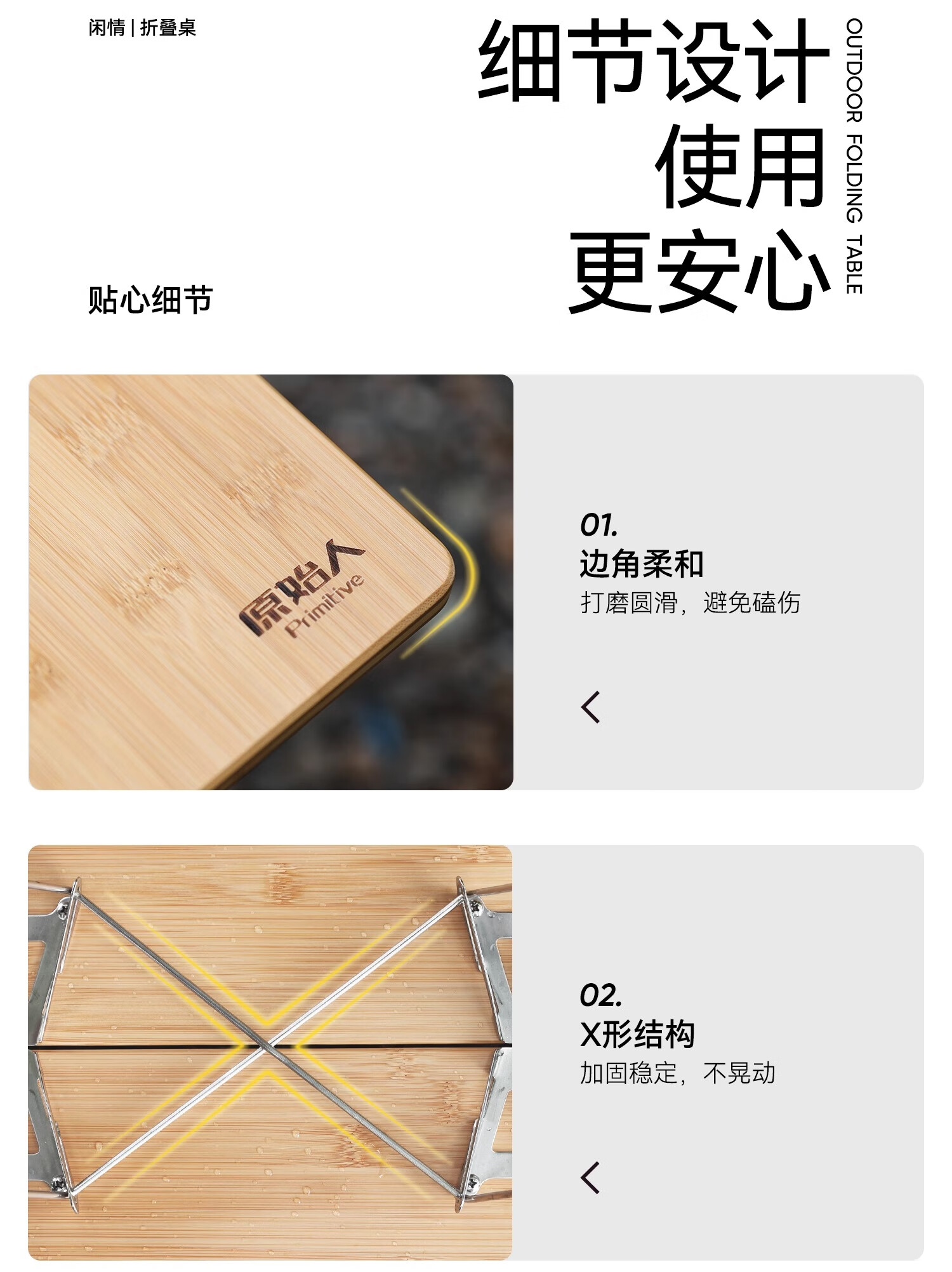 原始人户外折叠桌便携式野营野餐桌楠竹桌露营轻量化单人小桌子轻 楠竹折叠桌