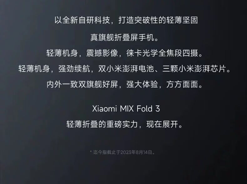 小米(MI)MIX Fold 3新款旗舰龙骨大折叠屏5G手机 月影黑 16+512G 【完美屏】精选靓机+快充配件