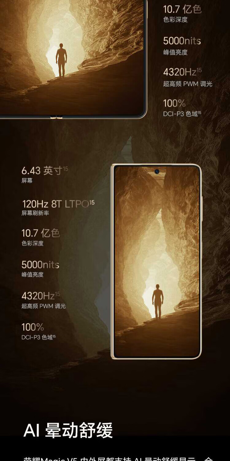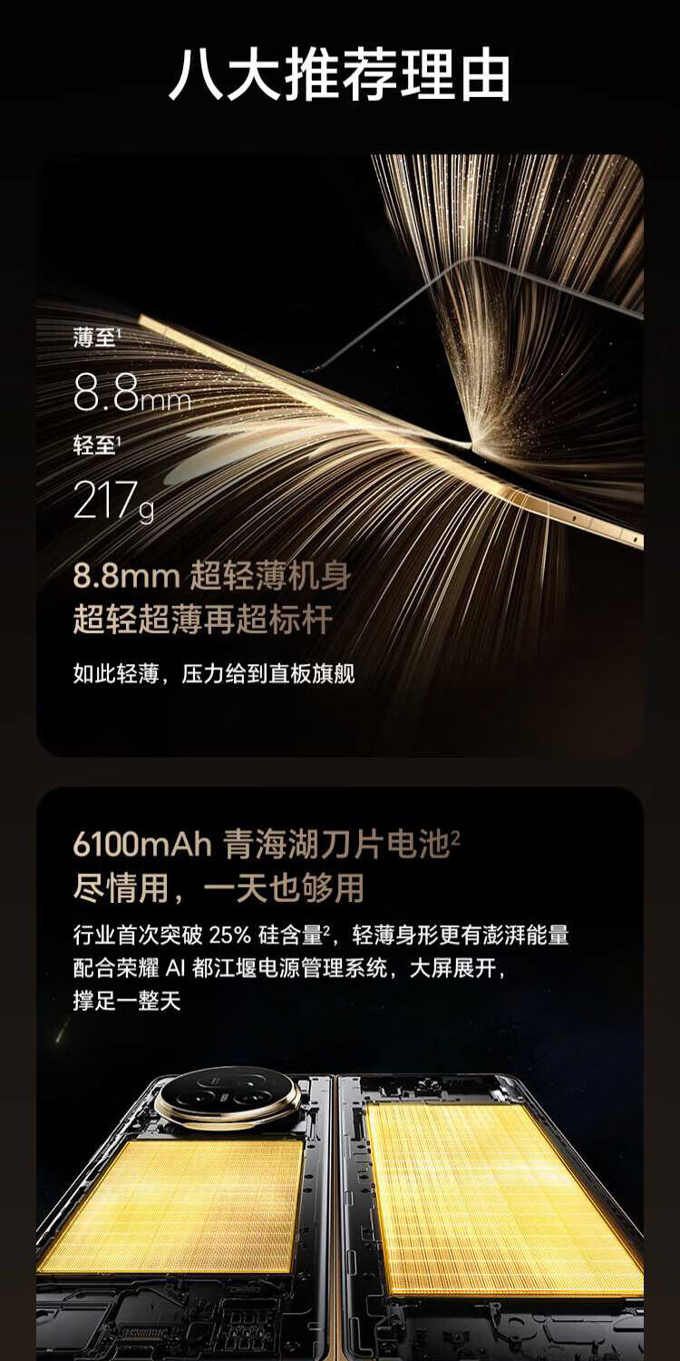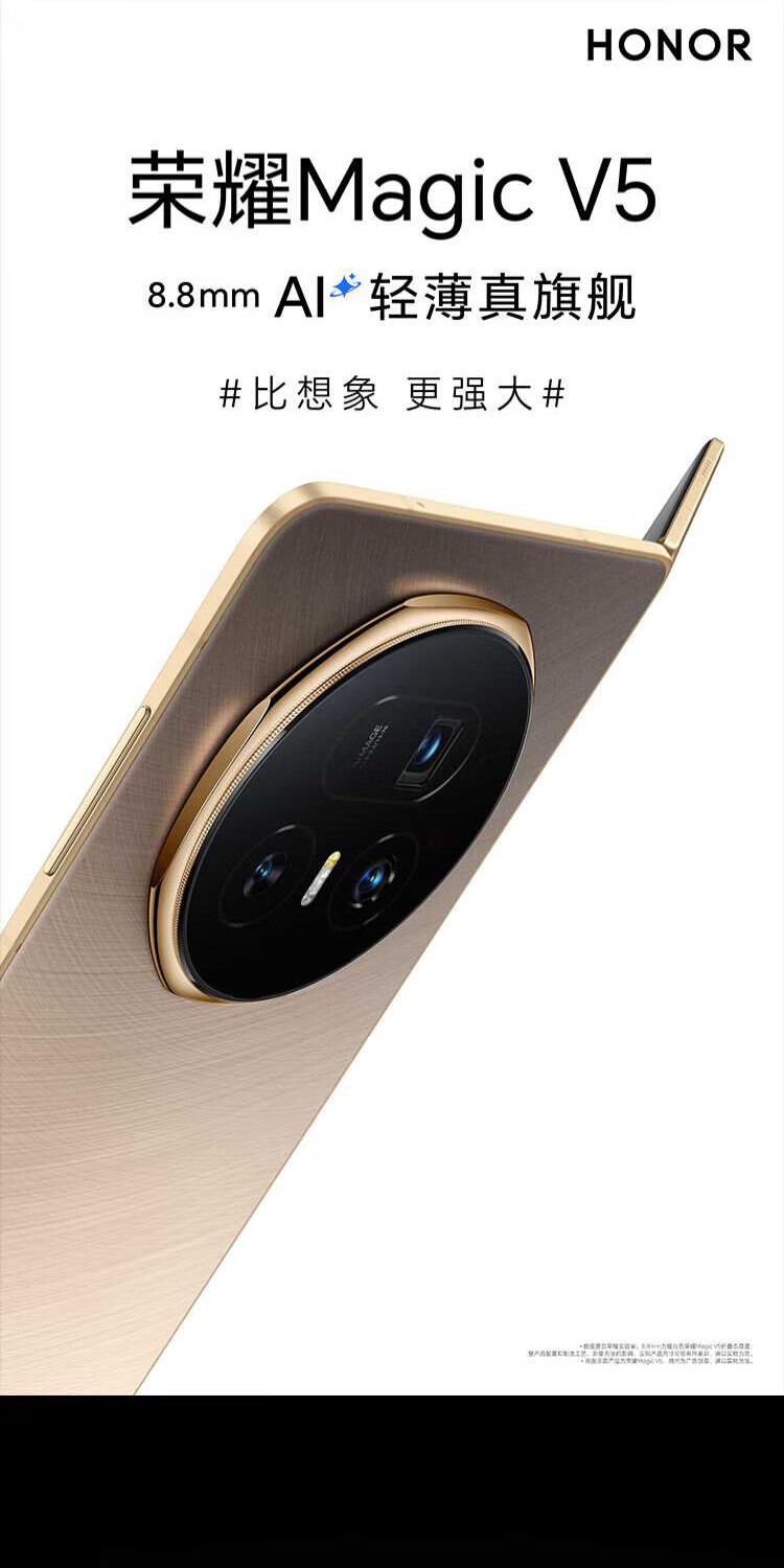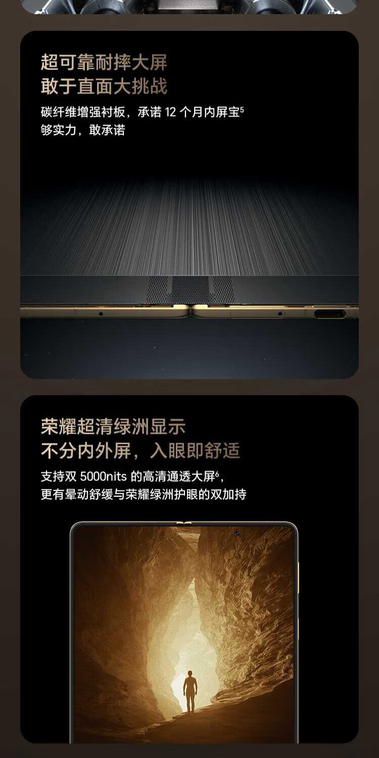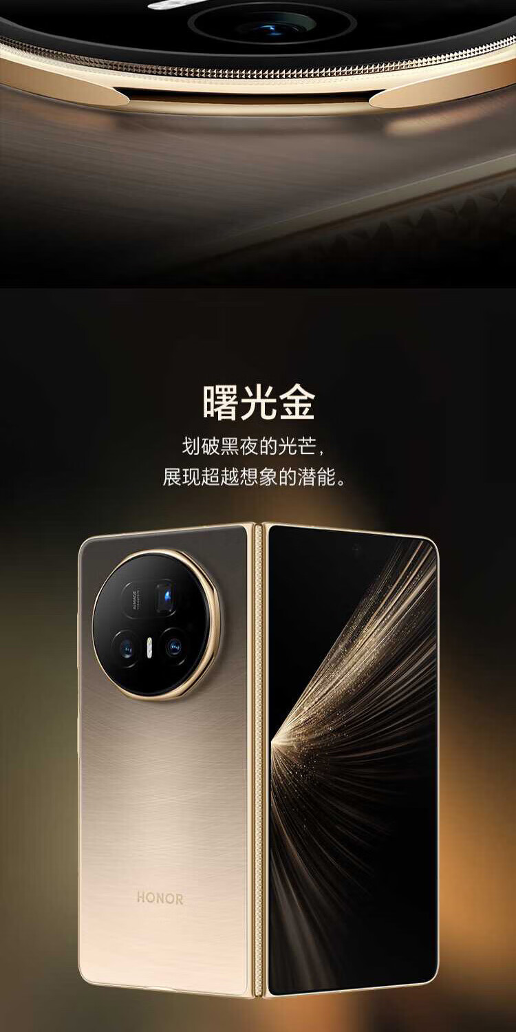 荣耀荣耀Magic V5 9mm轻薄长续航 青海湖刀片电池 新品5G折叠屏手机 曙光金 16GB+512GB 全国联保版本咨询客服